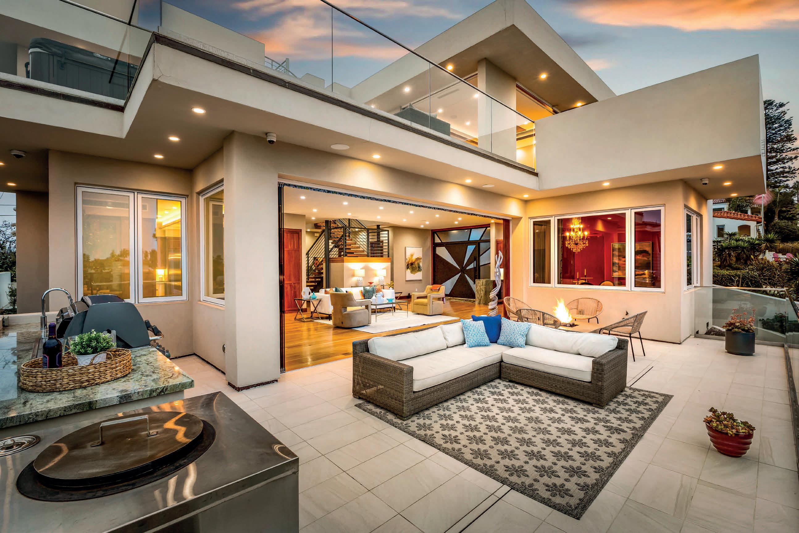 This exceptional custom home, built in 2018 and located in the highly desirable Sunset Cliffs, offers a coastal modern aesthetic with warm interior tones and stunning sit-down ocean and sunset views from most areas of the home, as well as three expansive outdoor living spaces. Perched above the street for added privacy, the home features an open-concept floor plan with high ceilings, frameless folding glass doors, and highend designer finishes throughout, including a gourmet chef’s kitchen with custom cabinetry and an oversized island, plus a separate beverage bar for entertaining. Designed for single-level living, the home includes an elevator that connects the first and second floors, with three ensuite bedrooms and a laundry room on the second floor. The spacious primary retreat boasts panoramic views through a seamless glass wall, a hidden projector for films or sports, and a luxurious spa-like bathroom with heated tile floors, a soaking tub, and a large walk-in closet. The property also offers three outdoor living spaces, including a gas fire pit, built-in BBQ with a Tandoor oven, a spa, and a rooftop deck with 360° views. Additional features include a concrete RV parking pad, an outdoor shower, a two-car garage with storage space and epoxy floors, an owned solar system, and proximity to the desirable Sunset View school district. Located near Point Loma and Shelter Island, this home provides easy access to yacht clubs, marinas, fishing boats, freeways, Downtown, Balboa & Petco Parks, and San Diego International Airport.