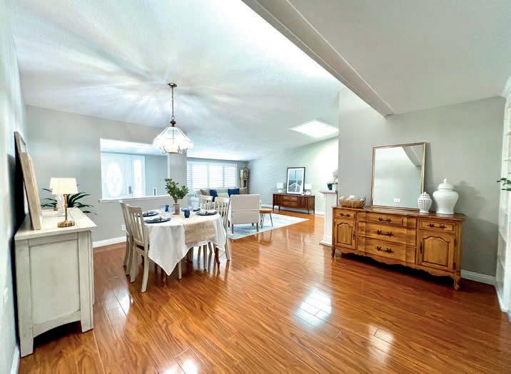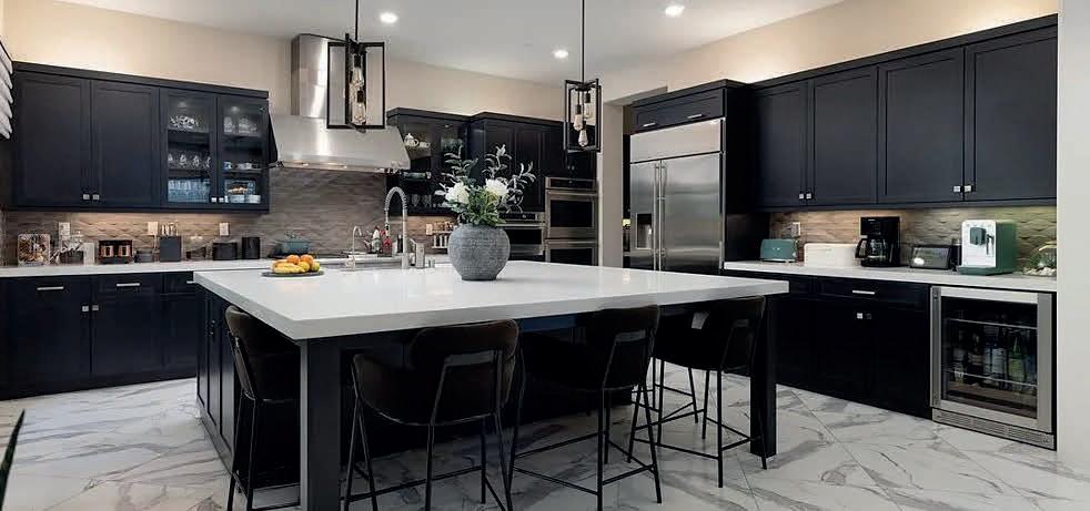 Th e upper level welcomes you with an open-concept layout that seamlessly connects the family room, dining area, and an expertly designed chefs kitchen; the heart of the home. This culinary masterpiece boasts high-end stainless steel appliances, decorator cabinetry with elegant hardware, stunning countertops, and an oversized island that provides both workspace and casual seating. Thoughtfully designed for both everyday living and grand entertaining, the kitchen offers ample storage, ensuring everything is within reach while maintaining a sleek, sophisticated look. Whether preparing an intimate meal or hosting a lively gathering, this space delivers both function and style