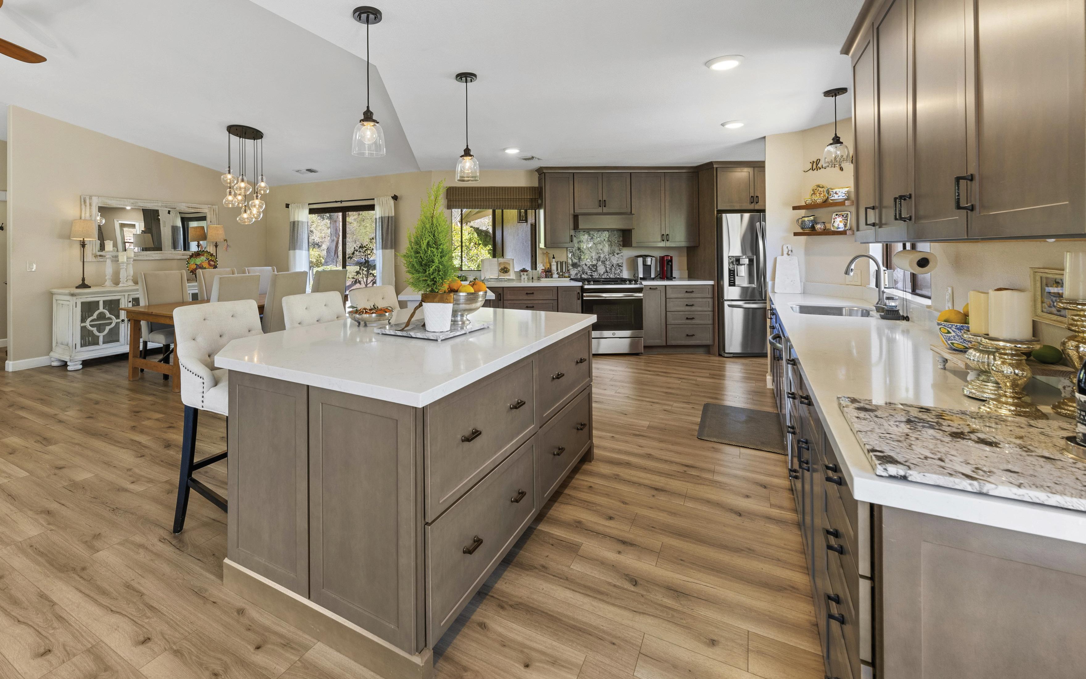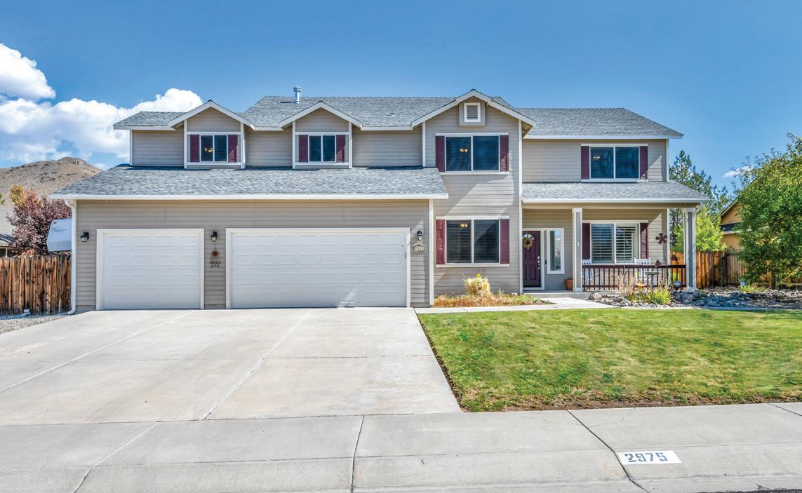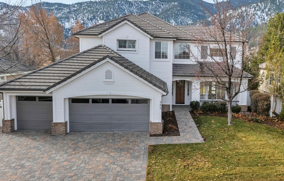 Nestled in the prestigious Genoa Lakes Golf Community, this spectacular, fully remodeled 2,731 sq ft, four-bedroom, threebathroom, four-car garage home offers unobstructed views of the majestic Sierra Mountains. From the moment you enter, you will be captivated by the attention to detail. With no home behind, renovations extend from floor to ceiling, including the driveway and fully redesigned landscaped grounds. Inside, soaring high ceilings and nine-foot doors are paired with an abundance of upgraded vinyl windows and endless charm.