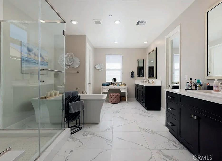 Nestled in desirable Columbus Square, this elegant 2008 home boasts one of the community’s largest floor plans at 3,348 sq ft. Featuring 4 beds, 4.5 baths, and inviting double porches, it offers stunning curb appeal. Inside, newly added wood flooring and large baseboards enhance its charm. The chef’s kitchen includes an oversized island, stainless appliances, double ovens, and granite countertops. Expansive windows and recessed lighting provide natural warmth. The low-maintenance backyard is perfect for entertaining, featuring a BBQ island, pavers, turf, putting green, and fresh landscaping. Upstairs, all bedrooms have ensuite baths, with a shared balcony between two. The luxurious primary suite includes a massive ensuite, walk-in closet, oversized tub, and dual vanity. Convenient second-floor laundry. Columbus Square offers a resort-style pool, clubhouse, playground, and fitness center with low HOA fees. Close to top-rated schools, shopping, dining, and easy freeway access to the beach and airport.