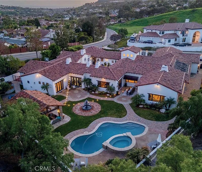 HIGHEST PRICE PER SQUARE FOOT IN LAGUNA NIGUEL HISTORY. JUST SOLD OVER ASKING. Set in the prestigious guard-gated community of Bear Brand Ranch, 7 Searidge is a magnificent showcase of Spanish transitional architecture, offering unparalleled coastal living with breathtaking views of the Pacific Ocean, Catalina Island, and the sparkling city lights of South Orange County. An exceptional custom rebuild designed by leading local designer Laura Brophy sets the standard for chic and refined living. Spanning 8,151 sq ft, this custom-built estate features six bedrooms, eight bathrooms, a dedicated office, media room, bar, gym, and a separate ocean-view casita. Every space of the home has been meticulously crafted with luxurious materials and thoughtful design.