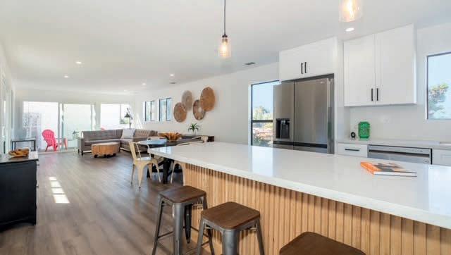 4 BD / 3.5 BA / 2,044 SQ FT / $970,000. Location is walking distance to restaurants and shops across the road from Costco Wholesale. Beautiful home and community. Great for the whole family. You can rent the bottom floor with Bedroom and full bath or a live-work area. Real hardwood flooring throughout. Upgraded throughout extra large kitchen with huge island to sit around plus extra dining area. Living room is spacious with fire place and balcony off the nook area. A MUST SEE. Community is not gated but very safe. Low HOA. Doggie area. Disabled parking. 2-car garage with built in storage. Soft water system throughout the home. Subzero refrigerator huge with additional refrigerator double door. Plenty of cupboards. 4 Bedrooms. Large master ensuite with 2 balcony attached for breezy relaxing afternoons. Stunning open floor plan with high ceilings throughout.