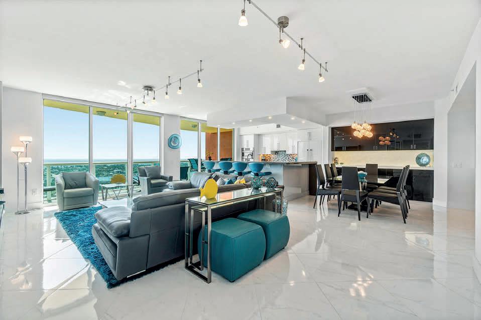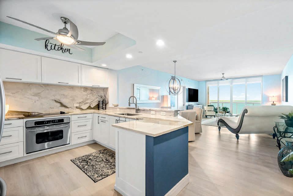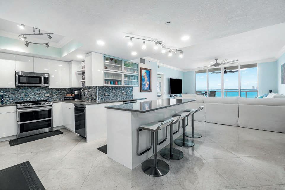 Skyline lights Discover *Panoramic ‘’Corner’’ SW Views with spectacular sunsets and Skyline Dr lights! Completely renovated from ceilings to floors! Electric Rolldown Shutters! Community has completed near new roof! 2 pools, one on ocean & one on river! 2 clubhouses! Water & Sewer included! Tennis! Insurance included! Pickleball! Billiards! Everything but electric included. This is perfection...shows like a stunning model.