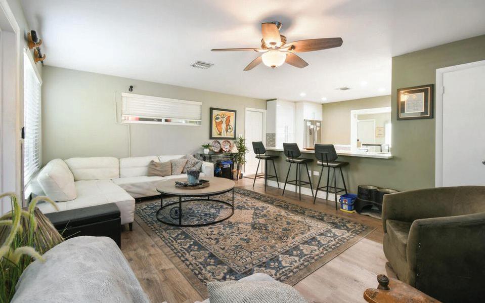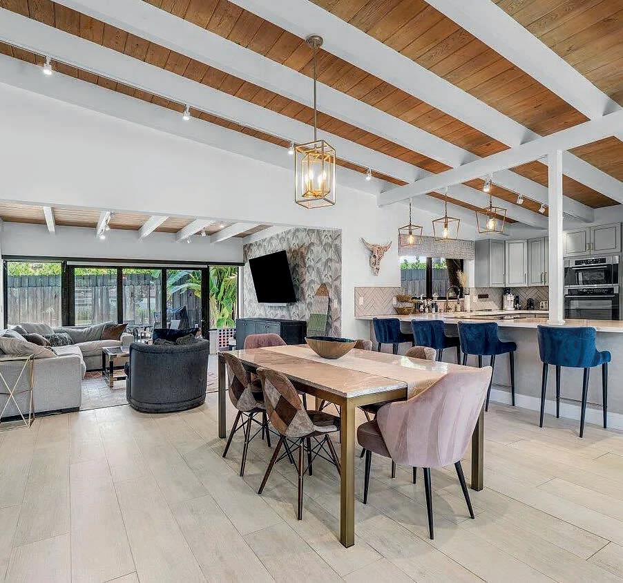 This beautifully renovated single-story home blends modern comfort with timeless European flair. Boasting 3 spacious bedrooms and 3 stylish en-suite bathrooms, it offers a thoughtfully designed layout perfect for both relaxed living and effortless entertaining. The main living area is bright and open, enhanced by soaring ceilings that add a sense of grandeur and space. Step into your private backyard oasis, where a shimmering pool invites you to unwind and cool off on sunny days. The convenient one-car garage provides space for a vehicle—or a golf cart for easy, breezy rides to The Ave. With its open-concept design, elegant finishes, and inviting ambiance, this home is truly an entertainer’s dream.