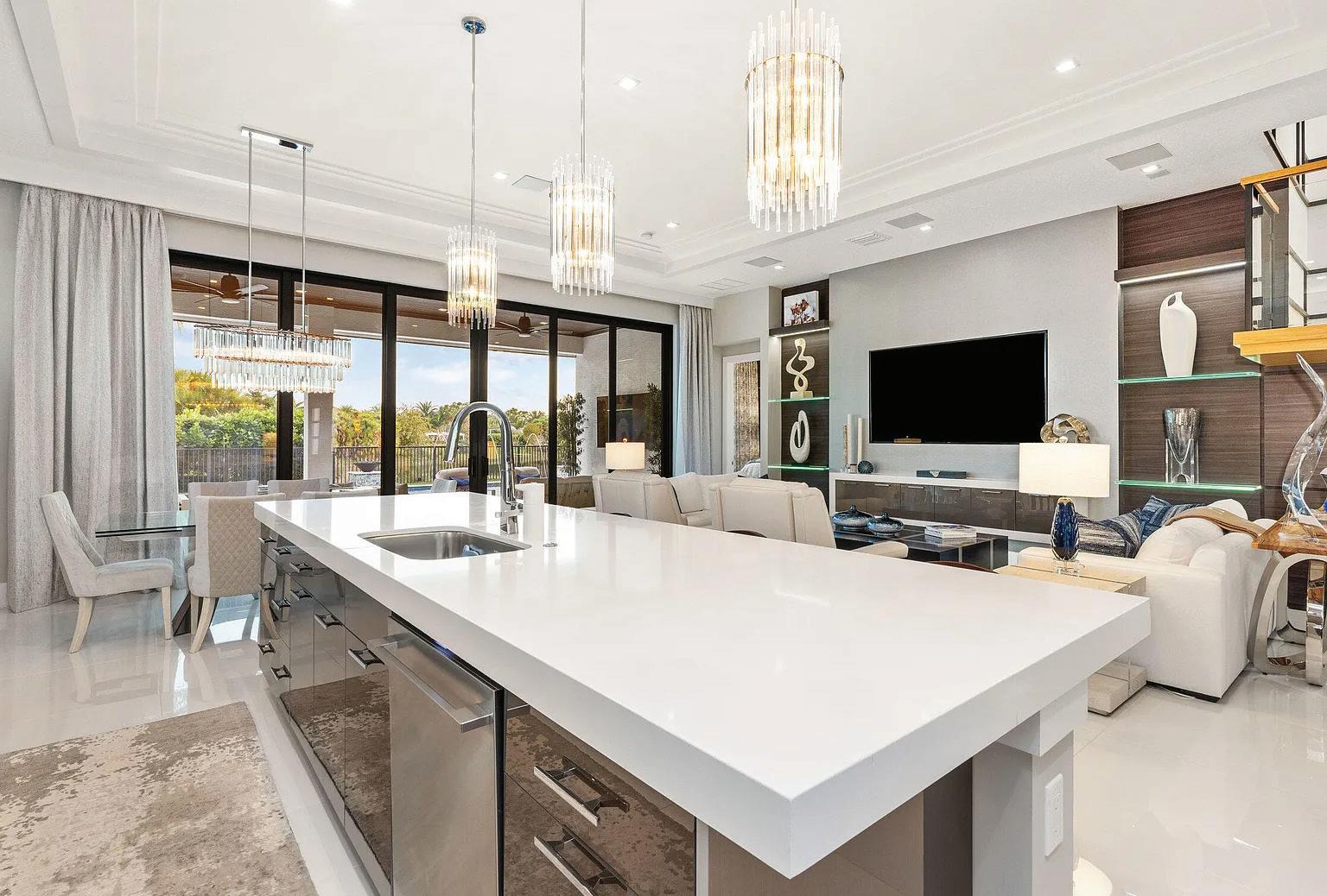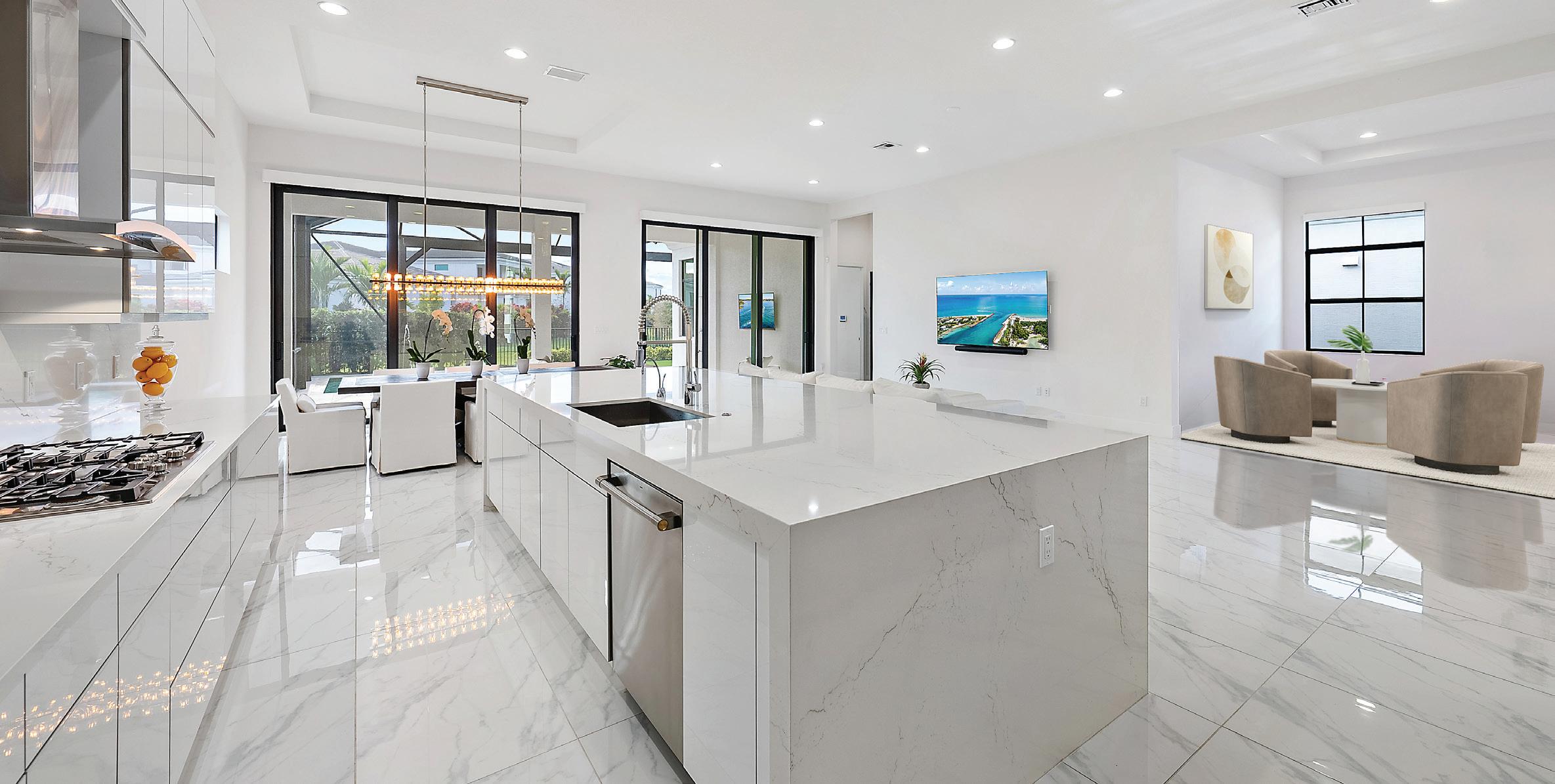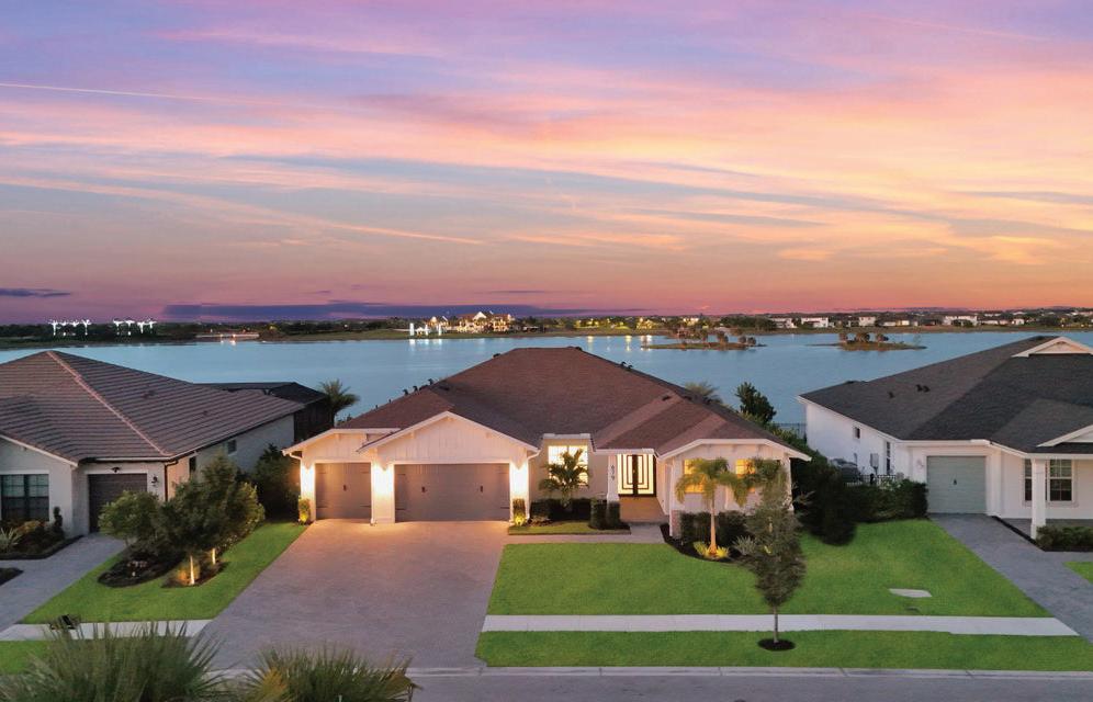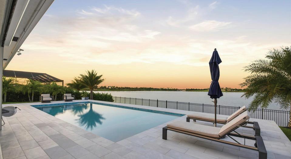 Indulge in the pinnacle of lakefront luxury with this stunning home in Palm Beach’s exclusive Artistry community. Sophisticated design meets modern elegance, with custom stairs, designer lighting, and curated furnishings enhancing every space. The gourmet kitchen impresses with stainless steel GE Profile appliances, a gas cooktop, quartz countertops, and a marble backsplash, perfect for culinary artistry. The expansive lake views, captured through a dramatic 3-panel slider, flow seamlessly to a resort-style saltwater pool, hot tub, and summer kitchen, creating an entertainer’s paradise.