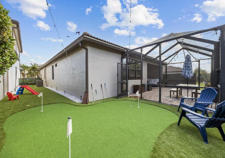 Welcome to this beautifully updated home, hurricane impact windows & doors, featuring a freshly painted exterior and a welcoming open-concept layout offers a spacious kitchen with granite countertops, backsplash, stainless steel appliances, newer refrigerator, complete with a walk-in pantry The seamless flow into the dining room, and family room creates the perfect setting for both everyday living and entertaining. The luxurious primary suite boasts a walk-through shower, double sinks, a separate water closet, and a custom-built closet,. With a thoughtful three-way split bedroom layout. The backyard is designed for relaxation and recreation, featuring a putting green and lush turf grass throughout, making it a perfect space for outdoor enjoyment. Located in sought after gated community, The Fields, with 2 clubhouses, gym and pool. 5 minutes away from Equestrian grounds, and beaches only 20 minutes away. Great seasonal home to own! Don’t miss the opportunity to make it yours!