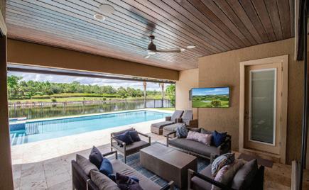 Step into a backyard oasis centered around a spectacular perimeter zero-edge infinity pool with spa and sun shelf. Glass walls in the club room slide away to create a seamless flow between the indoor bar lounge and the covered summer kitchen and dining pavilion.