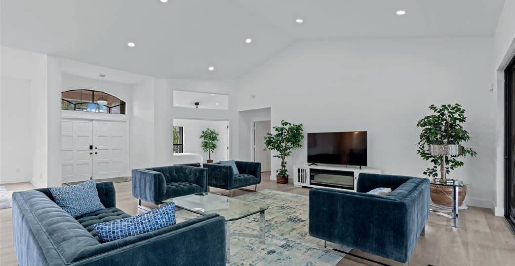 Every inch of this beautifully updated 4 BR / 2 BA/ 3,085-LSF home perfectly blends elegance, comfort & functionality. Each detail feels intentional - from the luxurious primary retreat to the open-concept kitchen that flows effortlessly into the family and dining areas. The home’s cohesive design continues outdoors with 2172 SF of sparkling resort-style pool, travertine paver decking, and a tiki retreat - creating a harmonious extension of living space ideal for entertaining & relaxation. This versatile floor plan also includes formal living & dining rooms, den, and Florida room spacious, inviting, and designed for everyday living. Other features include Calacatta-style quartz waterfall island, coffered ceilings, crown molding, sleek porcelain tile throughout, and so much more!