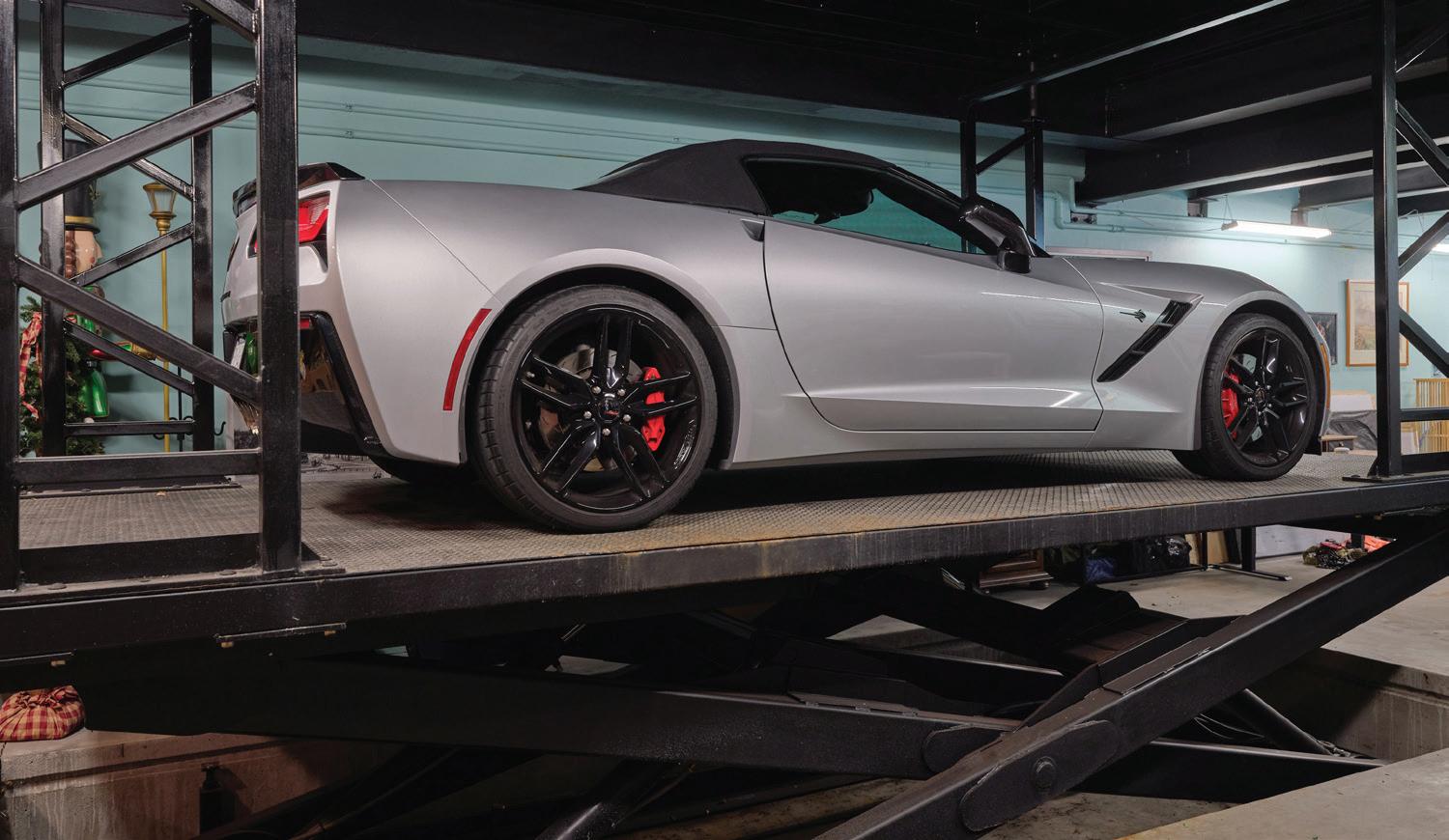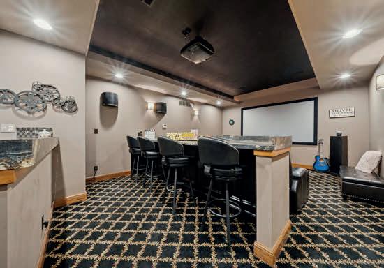 to the lower level, accommodating four vehicles below, one on the lift, and two in the main garage—plus parking for five additional cars in the driveway. A large storage space beneath the driveway provides ample room for summer gear, river toys, and seasonal décor. There is also an additional storage space that has a garage door to the backyard, great for bringing water toys in or versatile storage space. Additional features include: