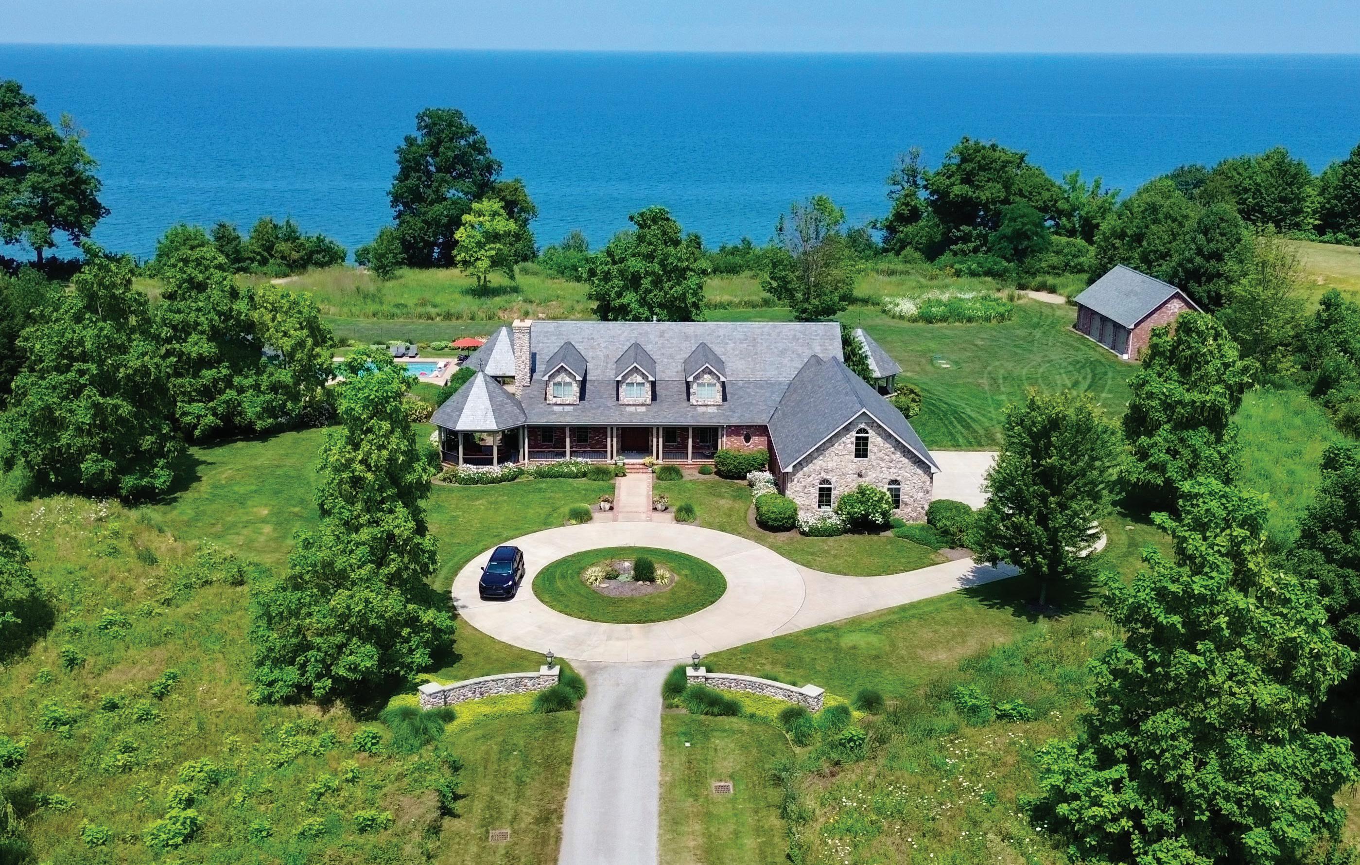 Perched above Lake Erie in Harborcreek, this award-winning 12+ acre estate offers a rare blend of luxury, privacy, and resort-style living. Enjoy refreshing lake breezes while relaxing poolside with surround sound, refreshments from the pool bar, and serene views in every direction. Unwind beneath three gazebos or across three covered porches, perfect for quiet moments or lively gatherings.