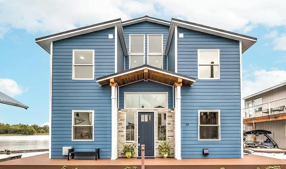 Welcome to this stunning brand-new floating home, offering the perfect combination of modern comfort and serene waterfront living. Thoughtfully designed with functionality and style in mind, this home features 4 spacious bedrooms and 3 bathrooms, including a main-level bedroom and bathroom. Spanning two levels plus a light-filled cupola, the layout is open and airy, with abundant storage cleverly integrated throughout. Each level extends to private decks, ideal for entertaining or simply taking in the surrounding beauty. Positioned at the end of the slip, the home enjoys expansive views of the river—providing a sense of privacy and tranquility. With floats rated 5 and located in a peaceful moorage, this property offers the rare opportunity to embrace floating home living without compromise. Every detail has been carefully considered, making this an exceptional place to call home.