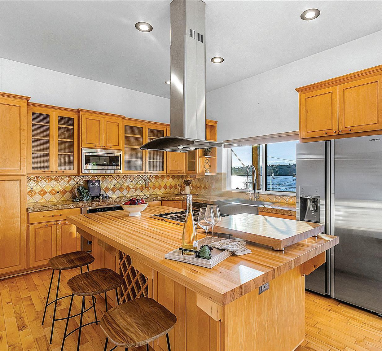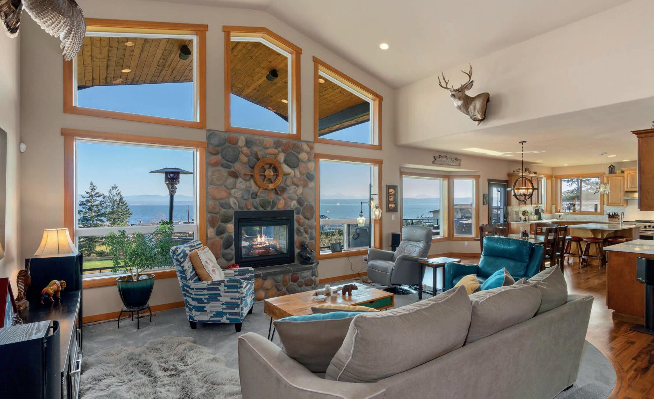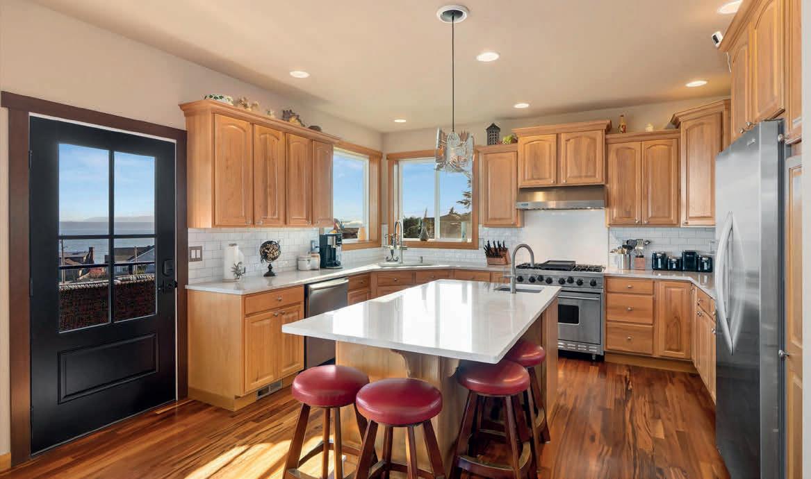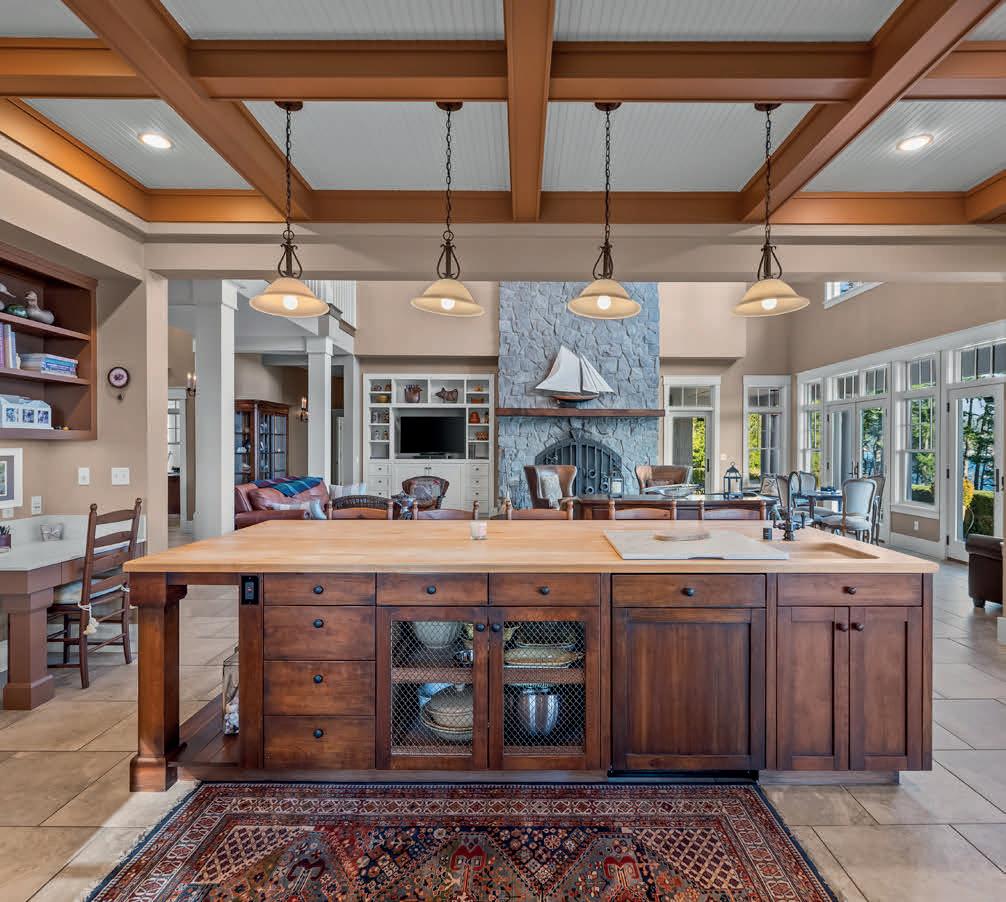 Set along the breathtaking banks of the Columbia River, this one of a kind, exceptional waterfront home offers over 400 feet of frontage and access to a shared dock, creating a true riverfront lifestyle. Thoughtfully landscaped grounds feature winding paths, stunning gardens, lush plantings, and a tranquil water feature, all leading to the water’s edge. The singlelevel Northwestern-style home includes 3 bedrooms and 3.5 bathrooms, with high ceilings, large picture windows and river views from nearly every room. The show-stopping kitchen is designed for both beauty and function, featuring a large center island, gas cooktop, stainless steel appliances, and panoramic river views. Both living and family rooms provide ample space to relax, with a cozy gas fireplace anchoring the living room. The spacious primary suite is a serene retreat with oversized windows overlooking the river and a beautifully updated bathroom offering a tiled shower, double sinks, solidsurface countertops, and a walk-in closet. Outside you’ll enjoy a large covered patio right along the river, lots of places to sit and enjoy the wildlife, a path to launch kayaks or paddle boards, a fenced grassy area, storage shed, two-car garage, 50 AMP Rv hookup, and abundant parking making this a rare and remarkable waterfront opportunity.