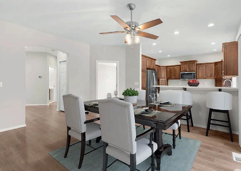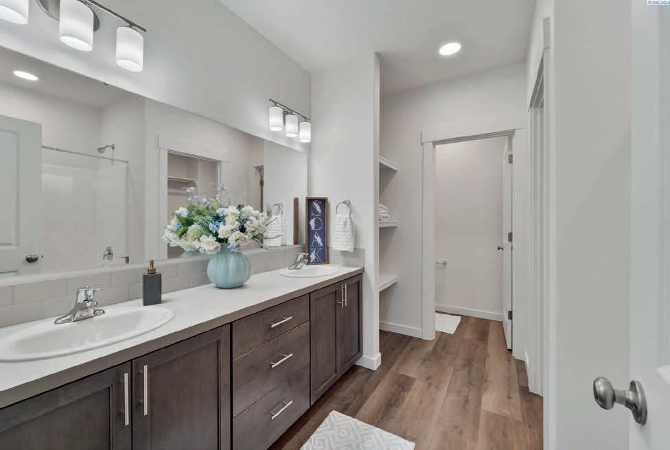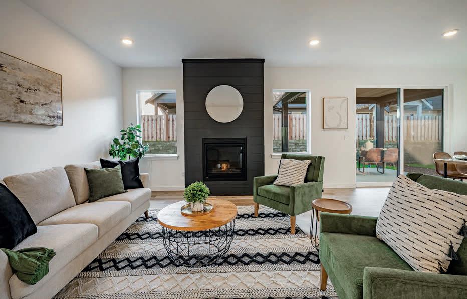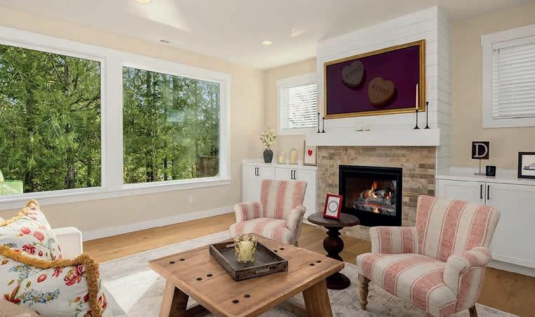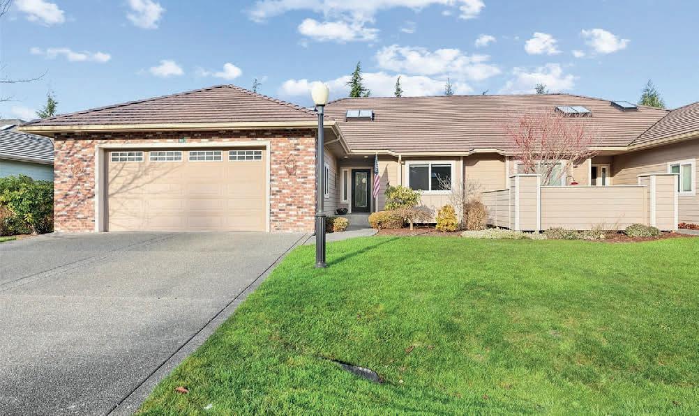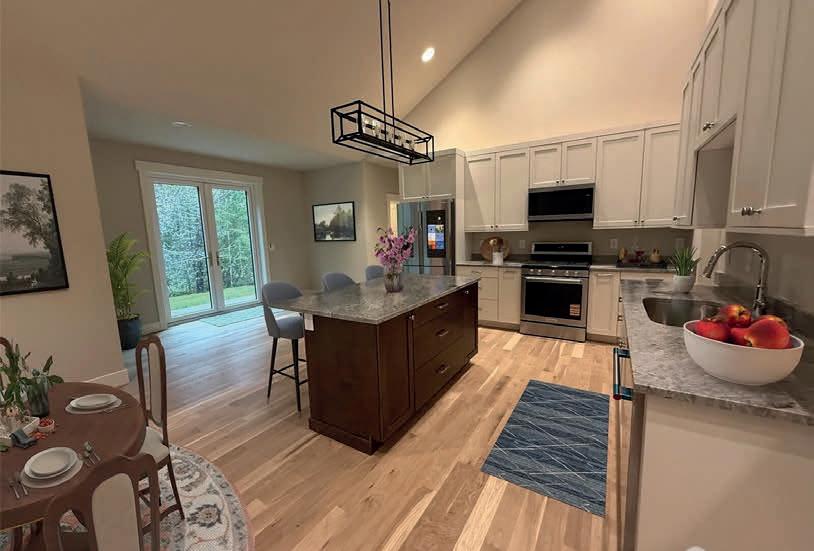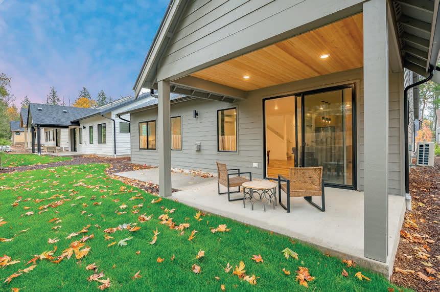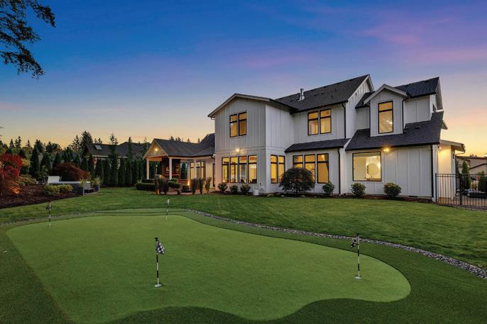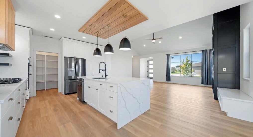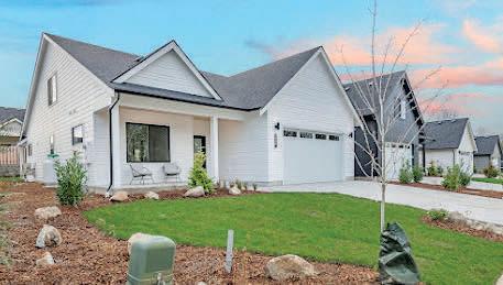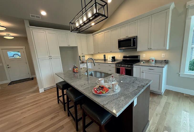 Pioneer Builders, Inc. represented by Kim Wilson, Paramount Real Estate Group. Modern Craftsman with premium accessibility & smart design. No-step, no-threshold entry & custom features make everyday living effortless. Solid oak hardwoods, ceramic tile, luxury vinyl, 9’/vaulted ceilings, designer paint, custom moldings & tailored window treatments elevate the interior. Propane fireplace &range add warmth & performance. A spacious primary suite boasts a large walk-in closet & whole-home surge/surge protection. Highefficiency systems include a 50-gal heat pump water heater, freshair system, triple-pane low-E glass, continuous insulation, WiFi & keypad LiftMaster garage opener, fully landscaped golf course property with lighting and sprinkler system. Lifestyle design for future multigenerational living. Exceptional Home. Energy Star certified.