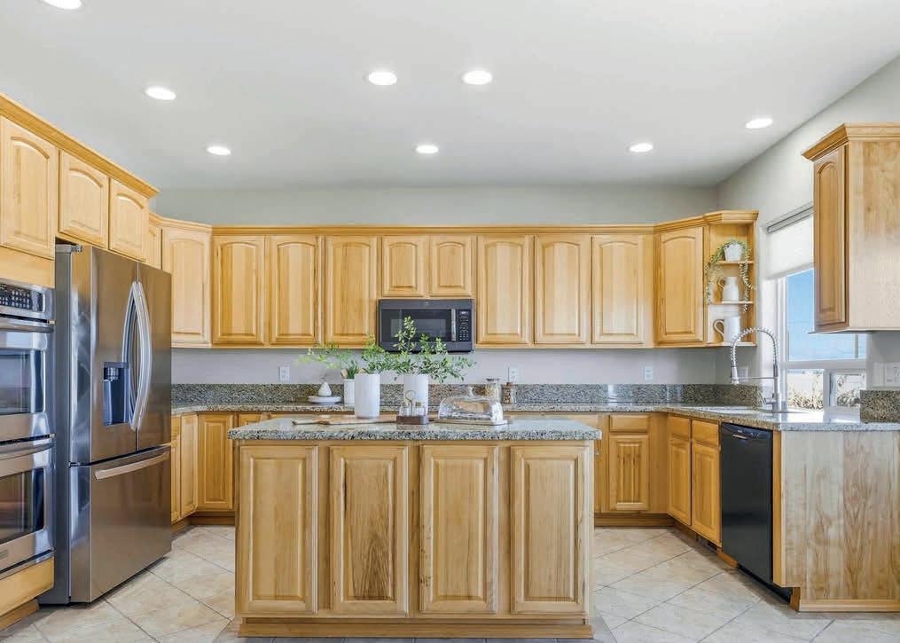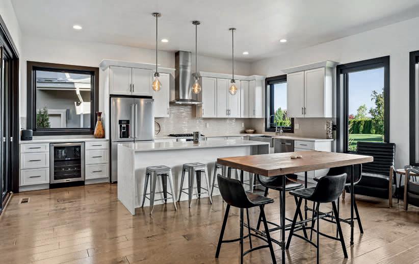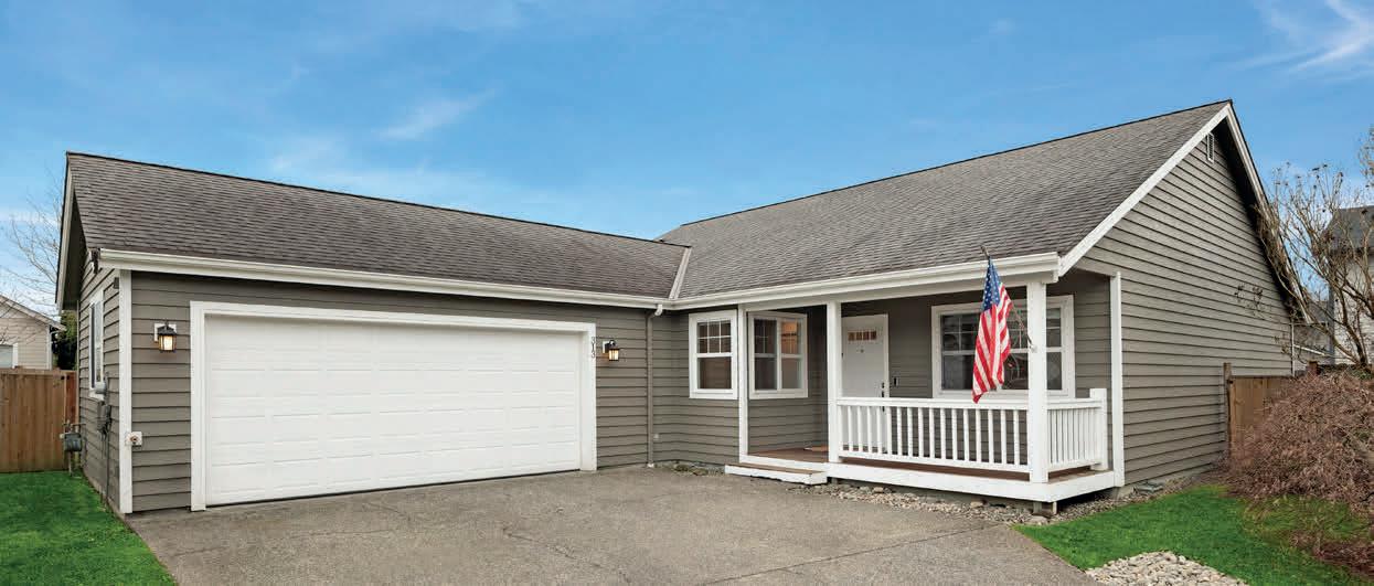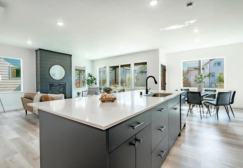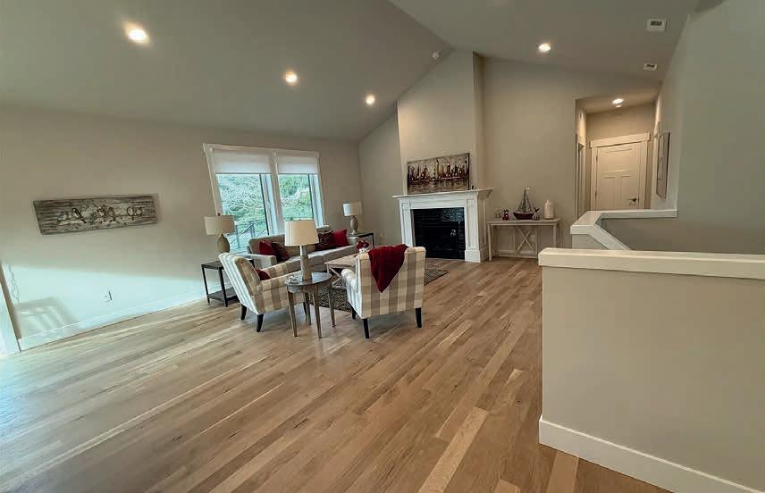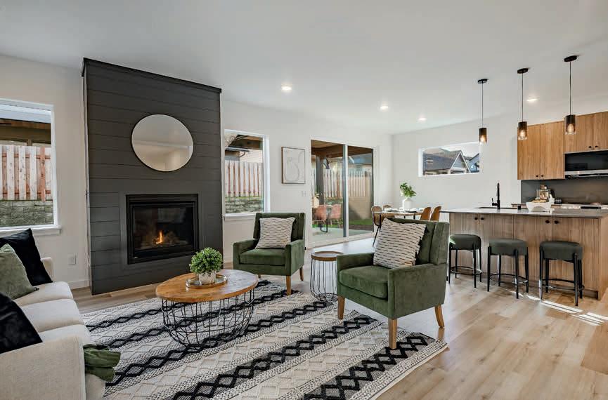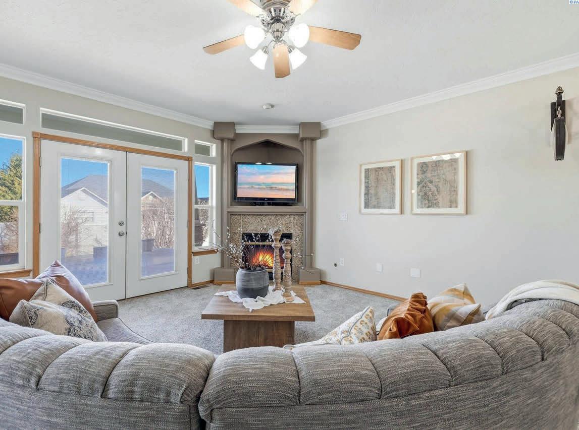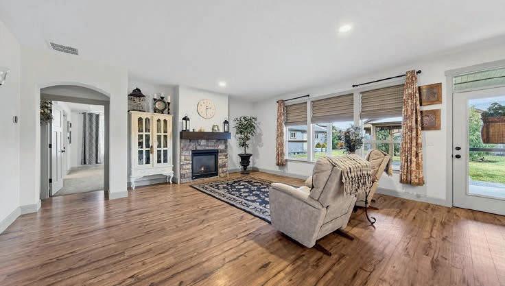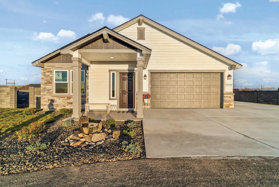 Pioneer Builders, Inc. represented by Kim Wilson, Paramount Real Estate Group. Modern Craftsman with premium accessibility & smart design. No-step, no-threshold entry & custom features make everyday living effortless. Solid oak hardwoods, ceramic tile, luxury vinyl, 9’/vaulted ceilings, designer paint, custom moldings & tailored window treatments elevate the interior. Propane fireplace &range add warmth & performance. A spacious primary suite boasts a large walk-in closet & whole-home surge/surge protection. Highefficiency systems include a 50-gal heat pump water heater, freshair system, triple-pane low-E glass, continuous insulation, WiFi & keypad LiftMaster garage opener, fully landscaped golf course property with lighting and sprinkler system. Lifestyle design for future multigenerational living. Exceptional Home. Energy Star certified.