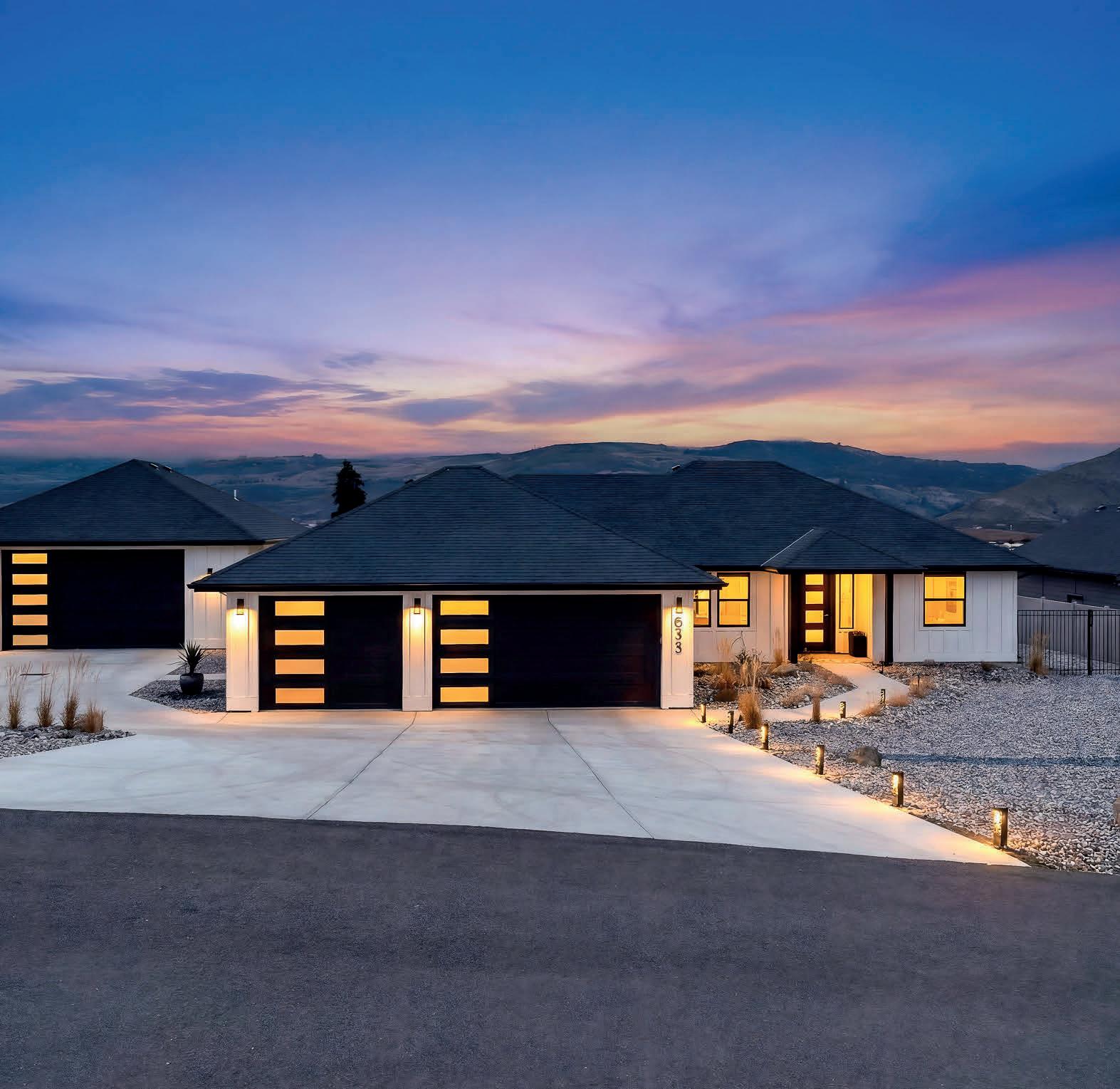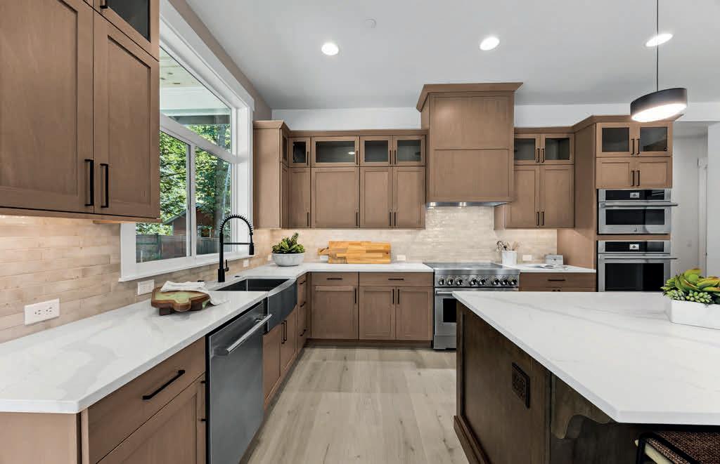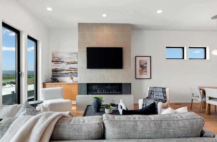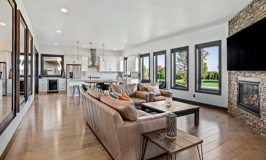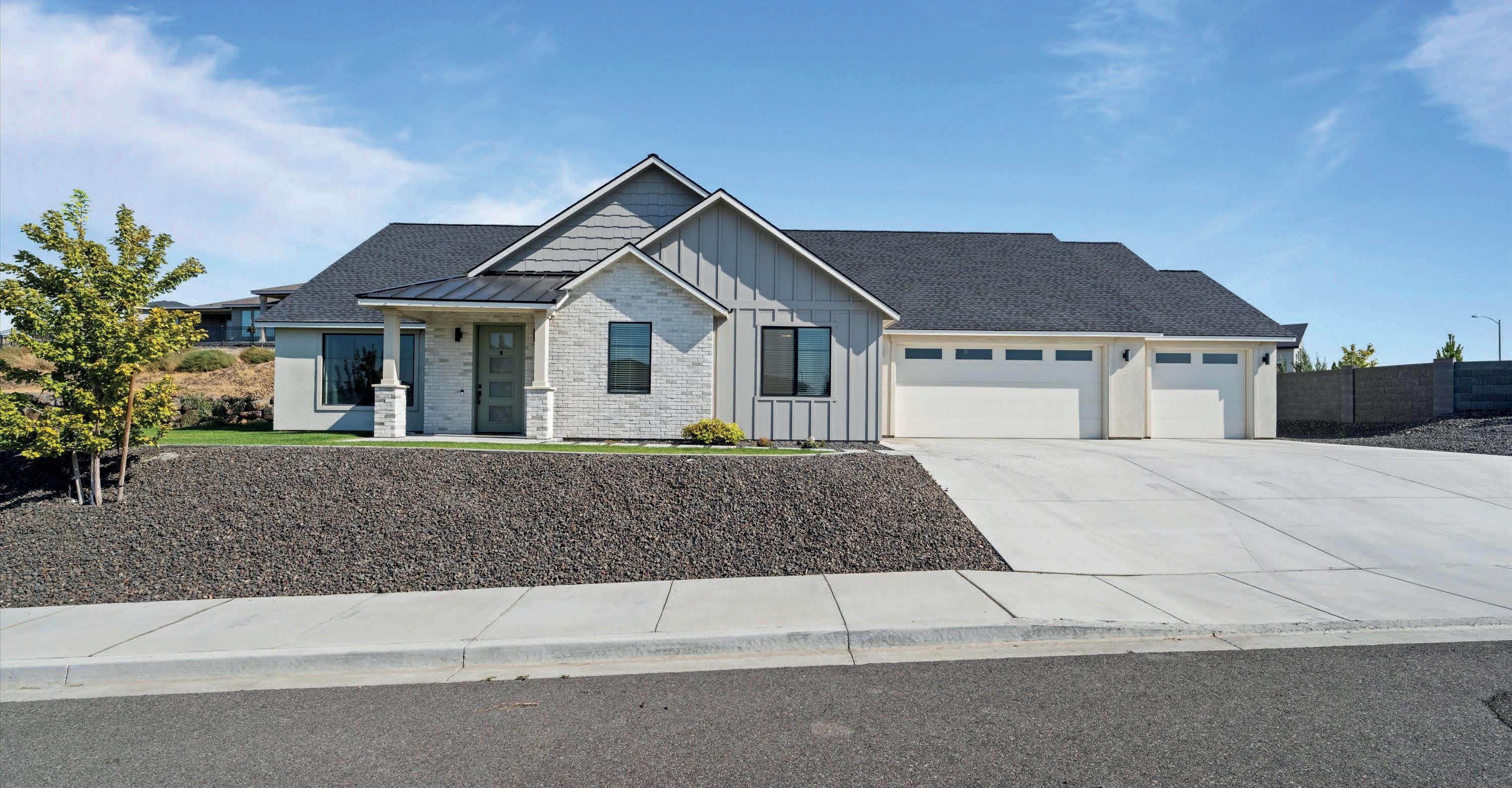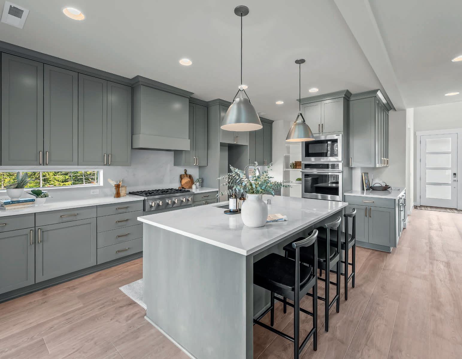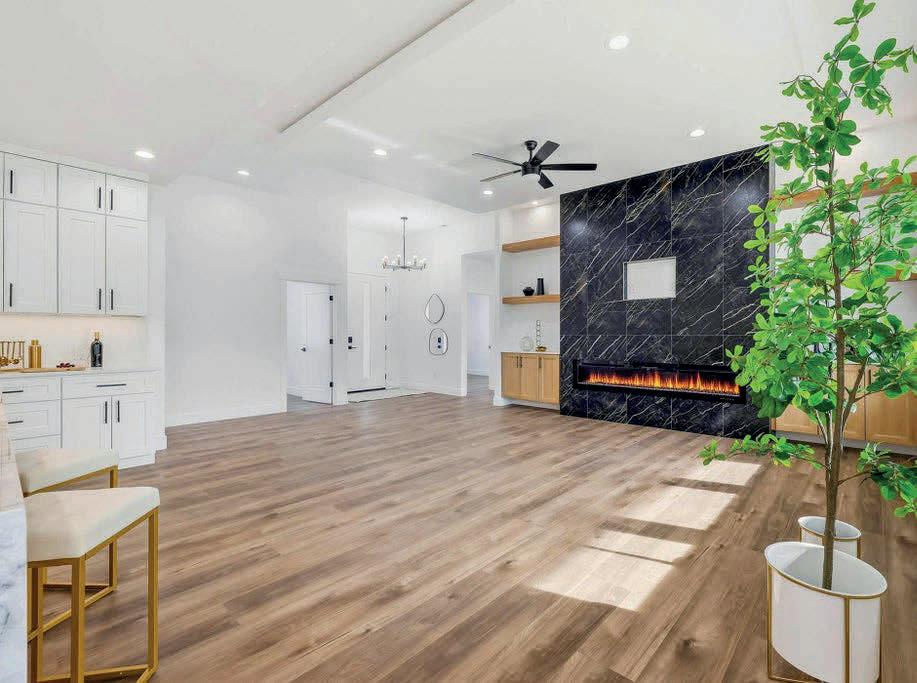 Pioneer Builders, Inc. represented by Kim Wilson, Paramount Real Estate Group. Modern Craftsman with premium accessibility & smart design. No-step, no-threshold entry & custom features make everyday living effortless. Solid oak hardwoods, ceramic tile, luxury vinyl, 9’/vaulted ceilings, designer paint, custom moldings & tailored window treatments elevate the interior. Propane fireplace &range add warmth & performance. A spacious primary suite boasts a large walk-in closet & whole-home surge/surge protection. Highefficiency systems include a 50-gal heat pump water heater, freshair system, triple-pane low-E glass, continuous insulation, WiFi & keypad LiftMaster garage opener, fully landscaped golf course property with lighting and sprinkler system. Lifestyle design for future multigenerational living. Exceptional Home. Energy Star certified.