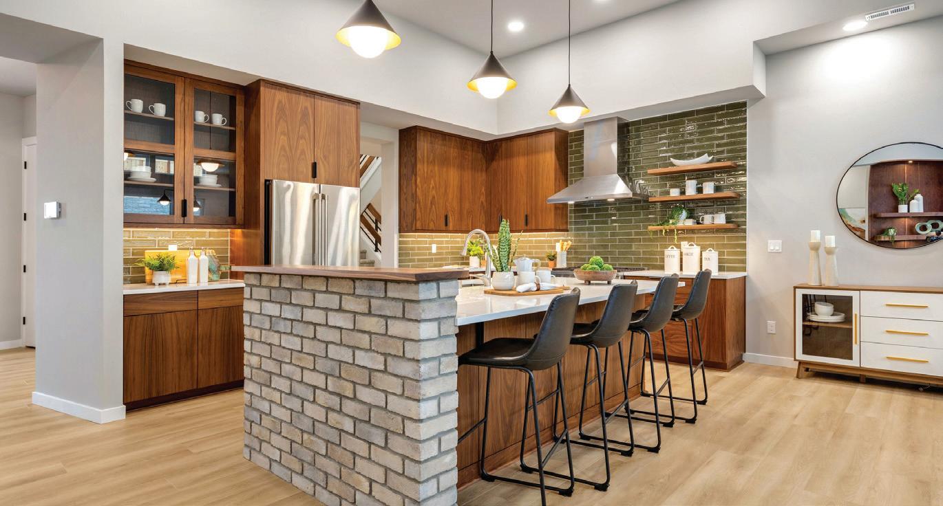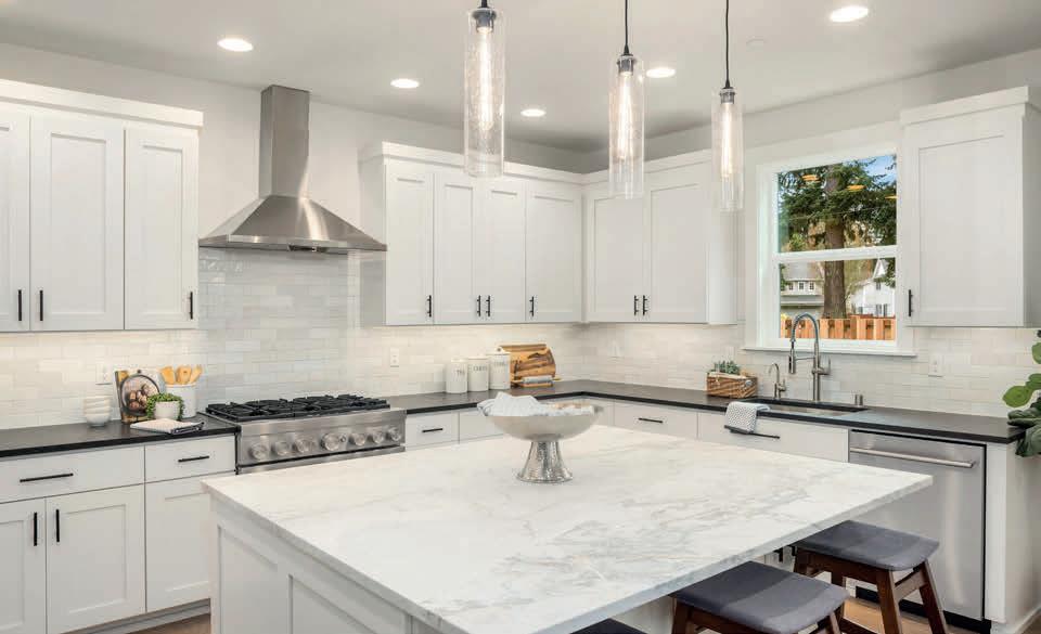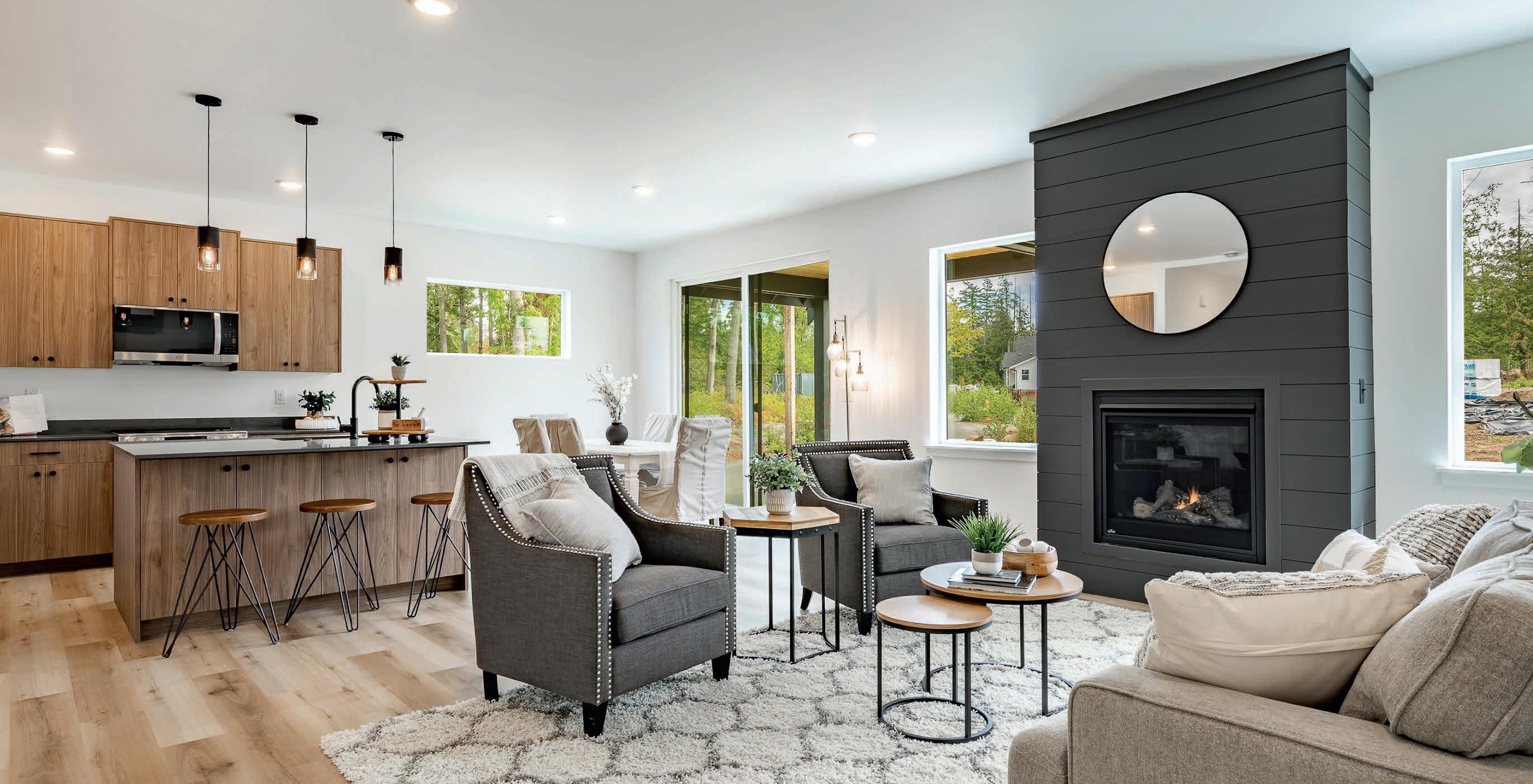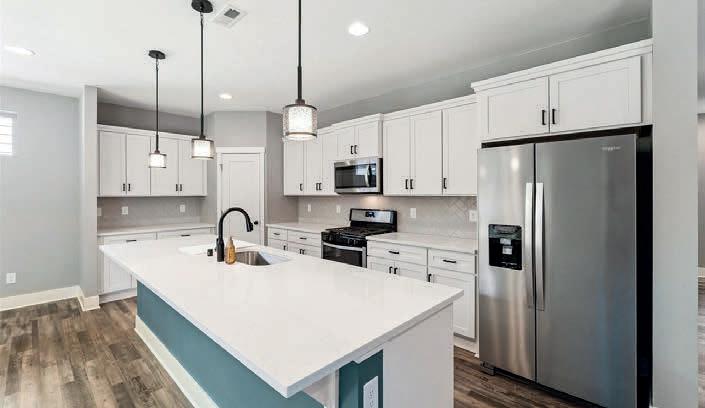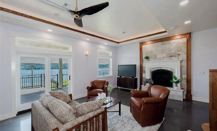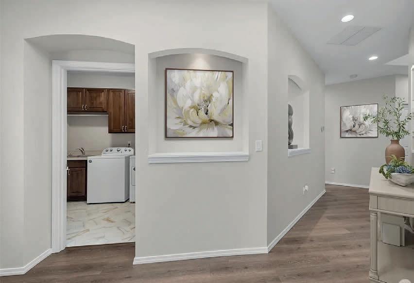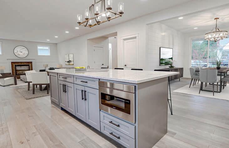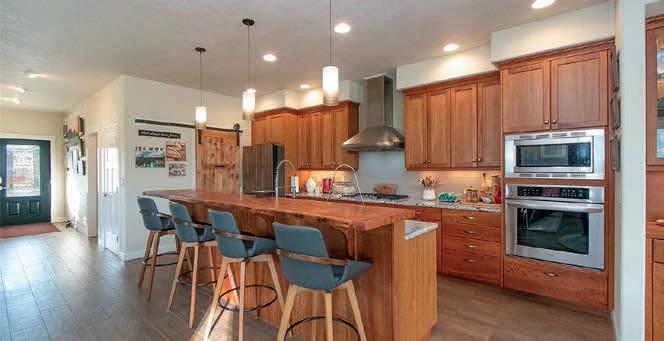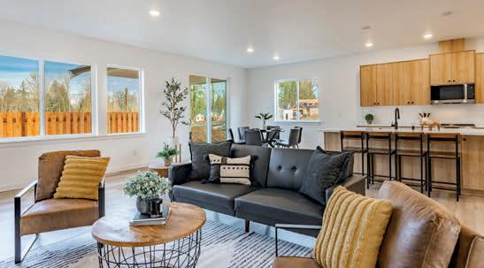 Pioneer Builders, Inc. represented by Kim Wilson, Paramount Real Estate Group. Modern Craftsman with premium accessibility & smart design. No-step, no-threshold entry & custom features make everyday living effortless. Solid oak hardwoods, ceramic tile, luxury vinyl, 9’/vaulted ceilings, designer paint, custom moldings & tailored window treatments elevate the interior. Propane fireplace &range add warmth & performance. A spacious primary suite boasts a large walk-in closet & whole-home surge/surge protection. Highefficiency systems include a 50-gal heat pump water heater, freshair system, triple-pane low-E glass, continuous insulation, WiFi & keypad LiftMaster garage opener, fully landscaped golf course property with lighting and sprinkler system. Lifestyle design for future multigenerational living. Exceptional Home. Energy Star certified.