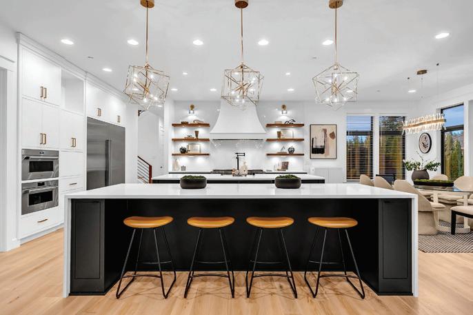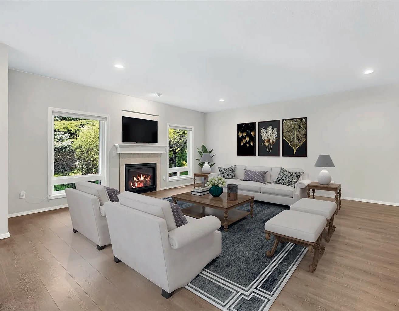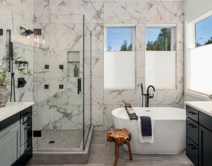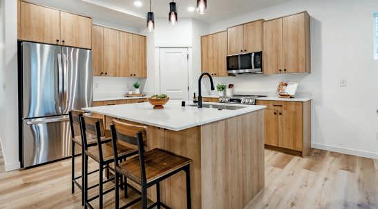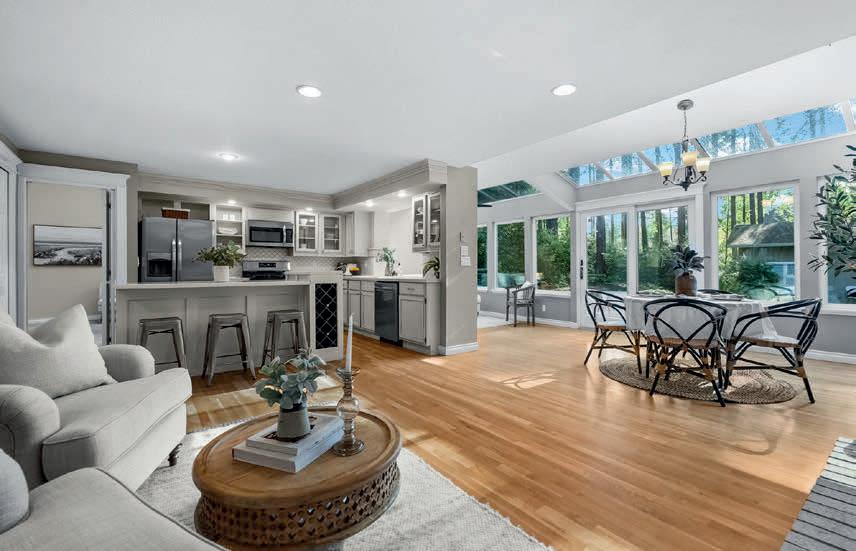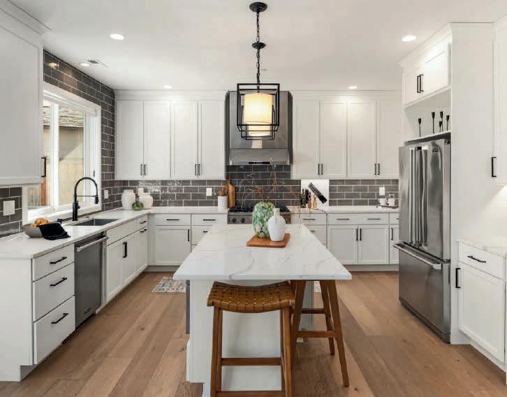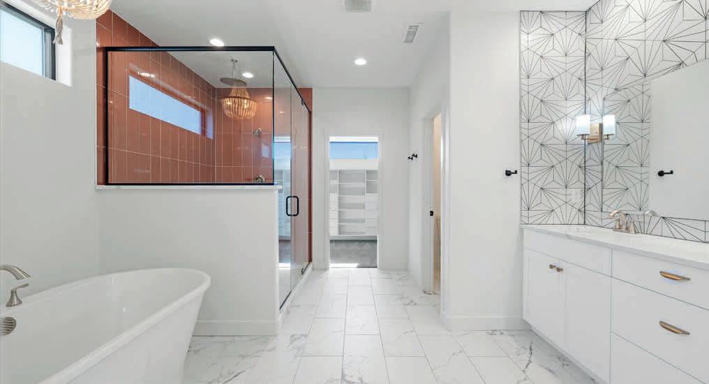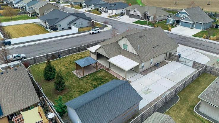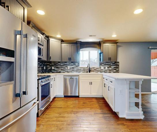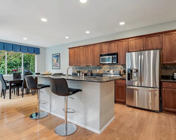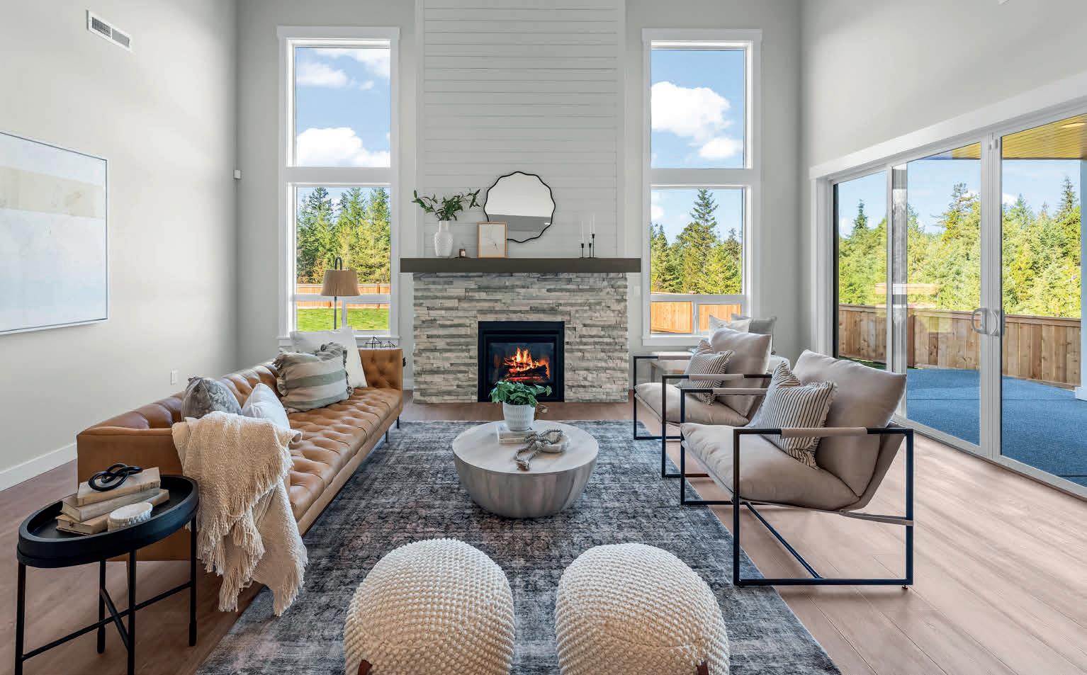 Pioneer Builders, Inc. represented by Kim Wilson, Paramount Real Estate Group. Modern Craftsman with premium accessibility & smart design. No-step, no-threshold entry & custom features make everyday living effortless. Solid oak hardwoods, ceramic tile, luxury vinyl, 9’/vaulted ceilings, designer paint, custom moldings & tailored window treatments elevate the interior. Propane fireplace &range add warmth & performance. A spacious primary suite boasts a large walk-in closet & whole-home surge/surge protection. Highefficiency systems include a 50-gal heat pump water heater, freshair system, triple-pane low-E glass, continuous insulation, WiFi & keypad LiftMaster garage opener, fully landscaped golf course property with lighting and sprinkler system. Lifestyle design for future multigenerational living. Exceptional Home. Energy Star certified.