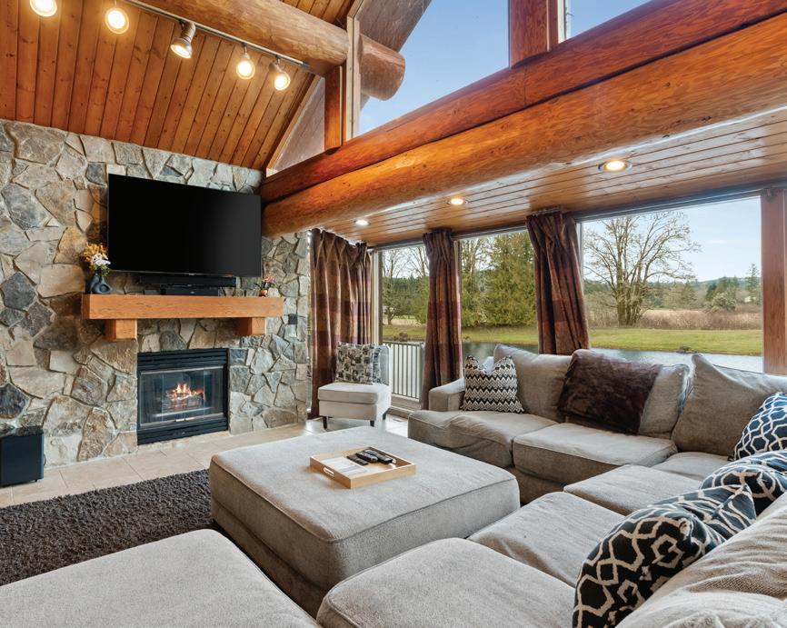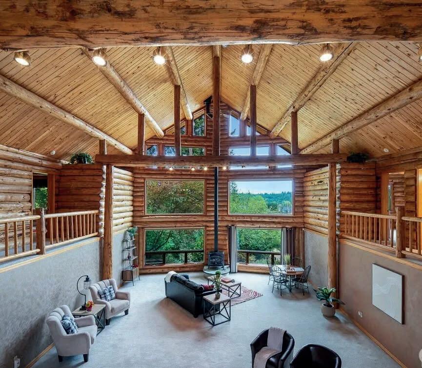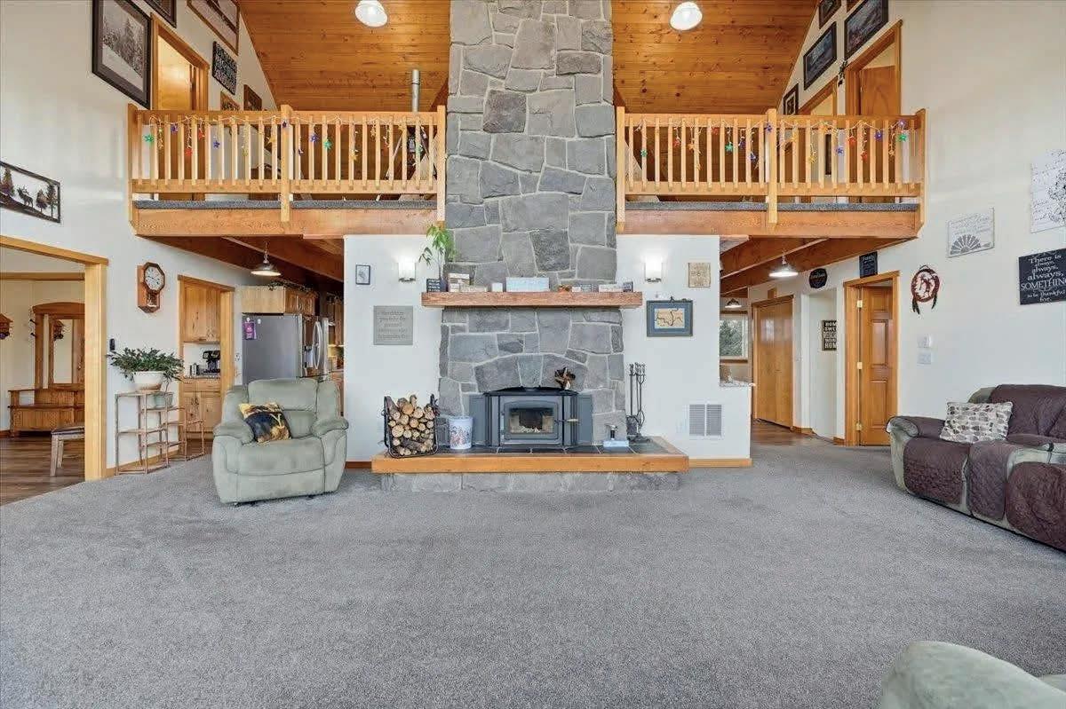 Located in the countryside between Chehalis and Adna, this custom Swedish Cope log home sits on approximately 23 acres surrounding a private spring-fed lake. Designed with large exposed logs and vaulted ceilings, the home offers approximately 5,418 square feet of living space and showcases the character and craftsmanship typical of traditional log construction. The primary bedroom includes a private loft space above, providing a quiet retreat or office area. Upstairs, a large bonus or recreation room with Murphy bed opens to a balcony overlooking the surrounding acreage and countryside. The property includes open pasture and usable land, with approximately five acres fenced for horses and a shop with attached stall and covered storage. The private lake is spring-fed and stocked with bass and bluegill, providing opportunities for fishing, swimming, paddleboarding, and enjoying the natural setting. Properties that combine significant acreage, private water, and authentic custom log construction are uncommon in Lewis County, especially within a short drive of Chehalis and I-5.