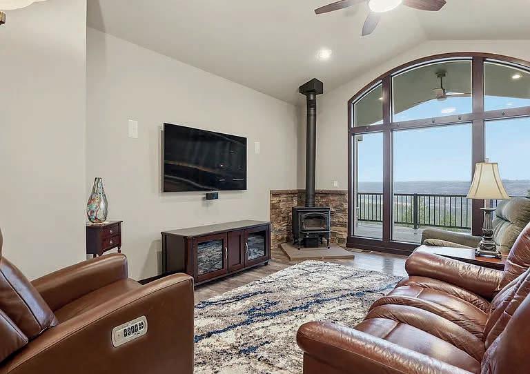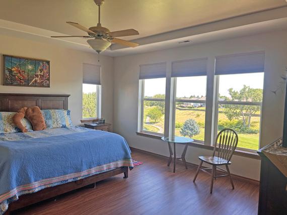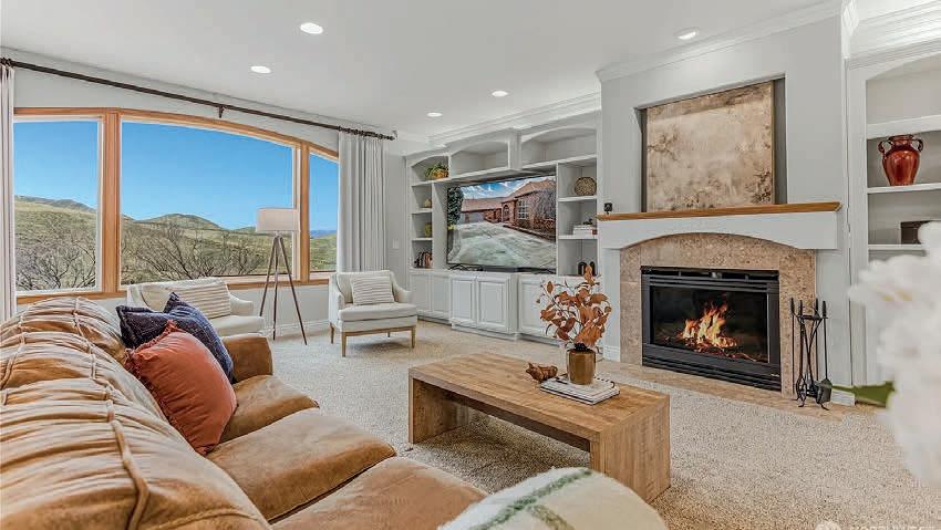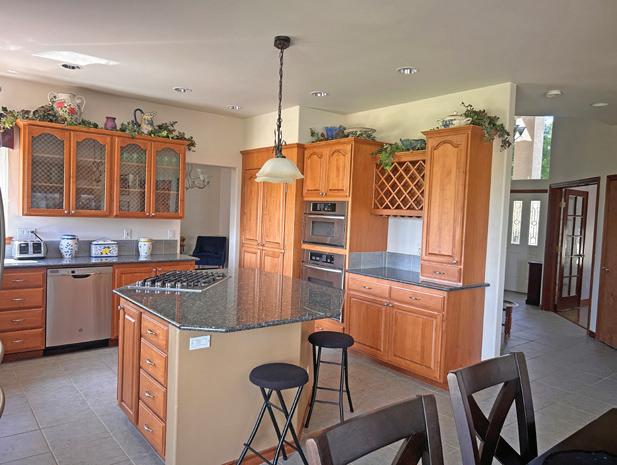 This spacious home features three bedrooms, three bathrooms, a large upstairs open room with sliders to a large balcony, a family room, a breakfast area, an island kitchen, and formal living and dining rooms. Enjoy two gas fireplaces with beautiful mantels, wood, tile, and LVP flooring, and an abundance of natural light. The deluxe master suite includes a glass block double shower, soaker tub, a walk-in closet, and stunning views.