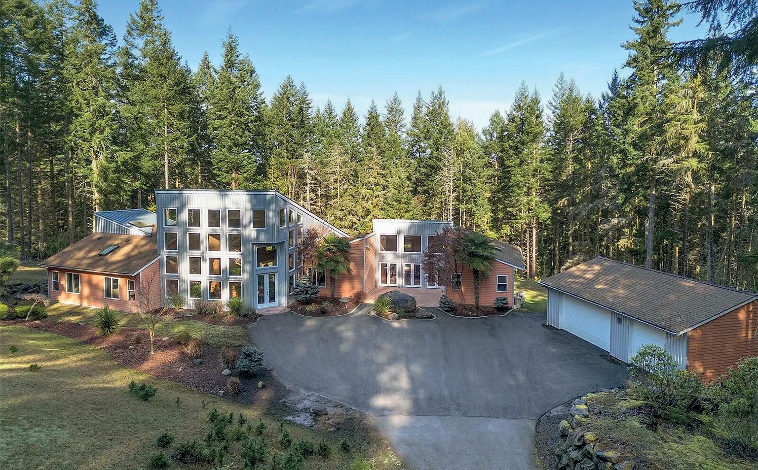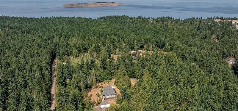Located on 10 acres on the West side of SJI. Home offers 1 bedroom with a sunken den, 2 baths, open floor plan with large picture windows in all of the living areas. Quality construction with exposed beams, wood wrapped windows, spacious tiled shower stalls & hardwood flooring. The site offers a large attractive pond with all of the associated wildlife which you can watch from the stone slate patio. Detached garage/shop,ample storage. The property is known for visits from the famous San Juan Island fox.