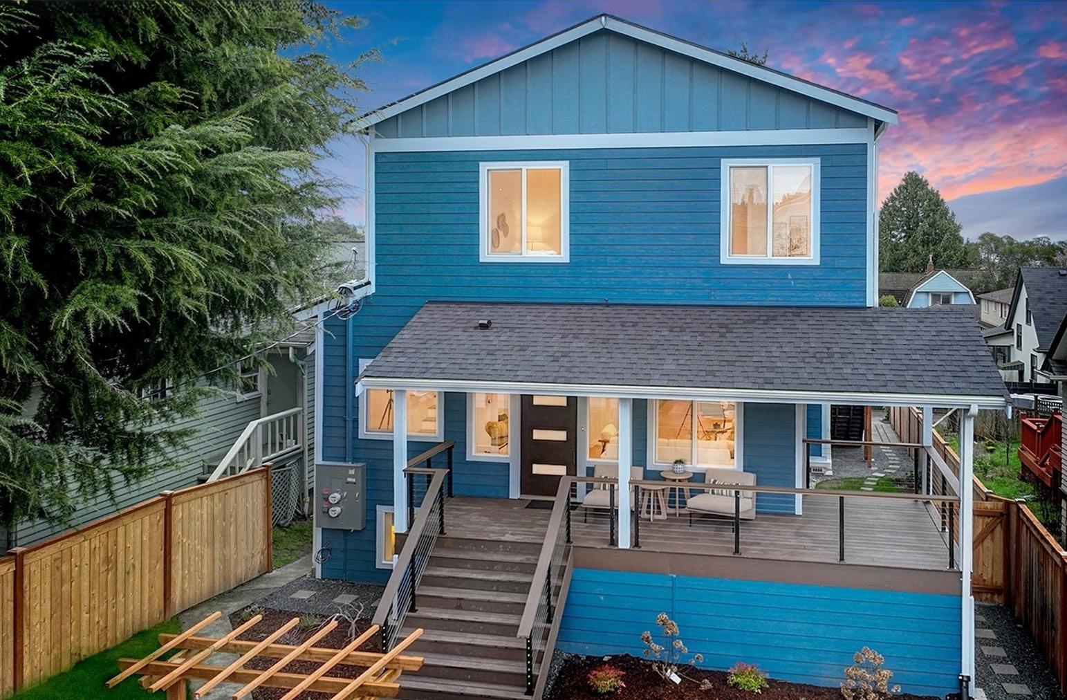 Location cannot be beat- Only 1 block to Greenlake! Reimagined Craftsman Home, thoughtfully updated to meet today’s discerning tastes. This fully permitted, legal duplex features a 4 bed/3.25 bath main home and a private-entry ADU offering two bedrooms and one full bath—perfect for multi-generational living or added rental income you can leverage for the upcoming FIFA World Cup. Inside the main home, 9+ ft ceilings & western exposure create a bright, open feel. The chef-inspired kitchen features quartz countertops & mostly WiFi-enabled stainless steel appliances, blending style with modern convenience. The serene primary suite includes a walk-in closet & a private deck, ideal for cozy evenings with lake views, along with heated flooring in the primary bath for added comfort. Private-entry ADU offers flexibility for guests, extended living, or income potential. Intentional outdoor living with 480 sq ft deck + 120 sq ft of storage beneath. Alley access provides parking for 4-5 vehicles. The full renovation showcases new electrical, HVAC, plumbing, roofing, framing & siding, along with efficient mini-split heating/cooling rated for sub-zero weather, dedicated dog washing station for fur babies, Milgard windows, two electric meters, hybrid water heaters for each unit & electric car charger readiness. Walking distance to Green Lake amenities, parks, shops, restaurants and more. Don’t miss this incredible home.
