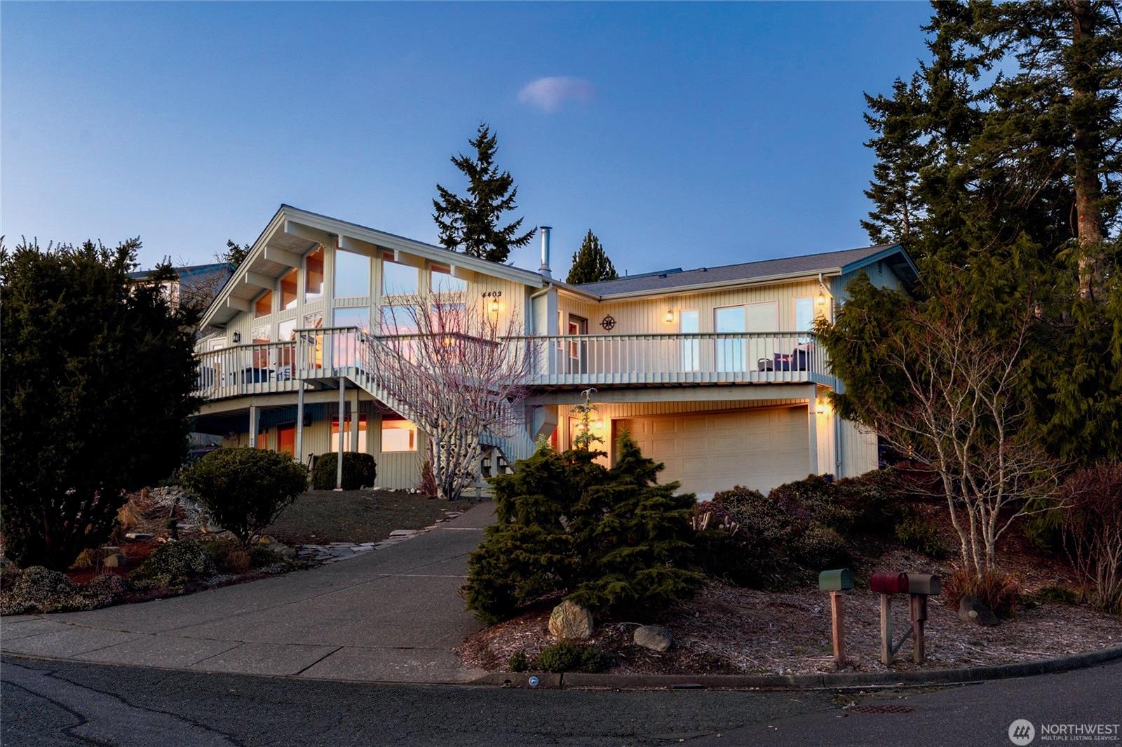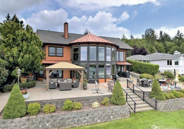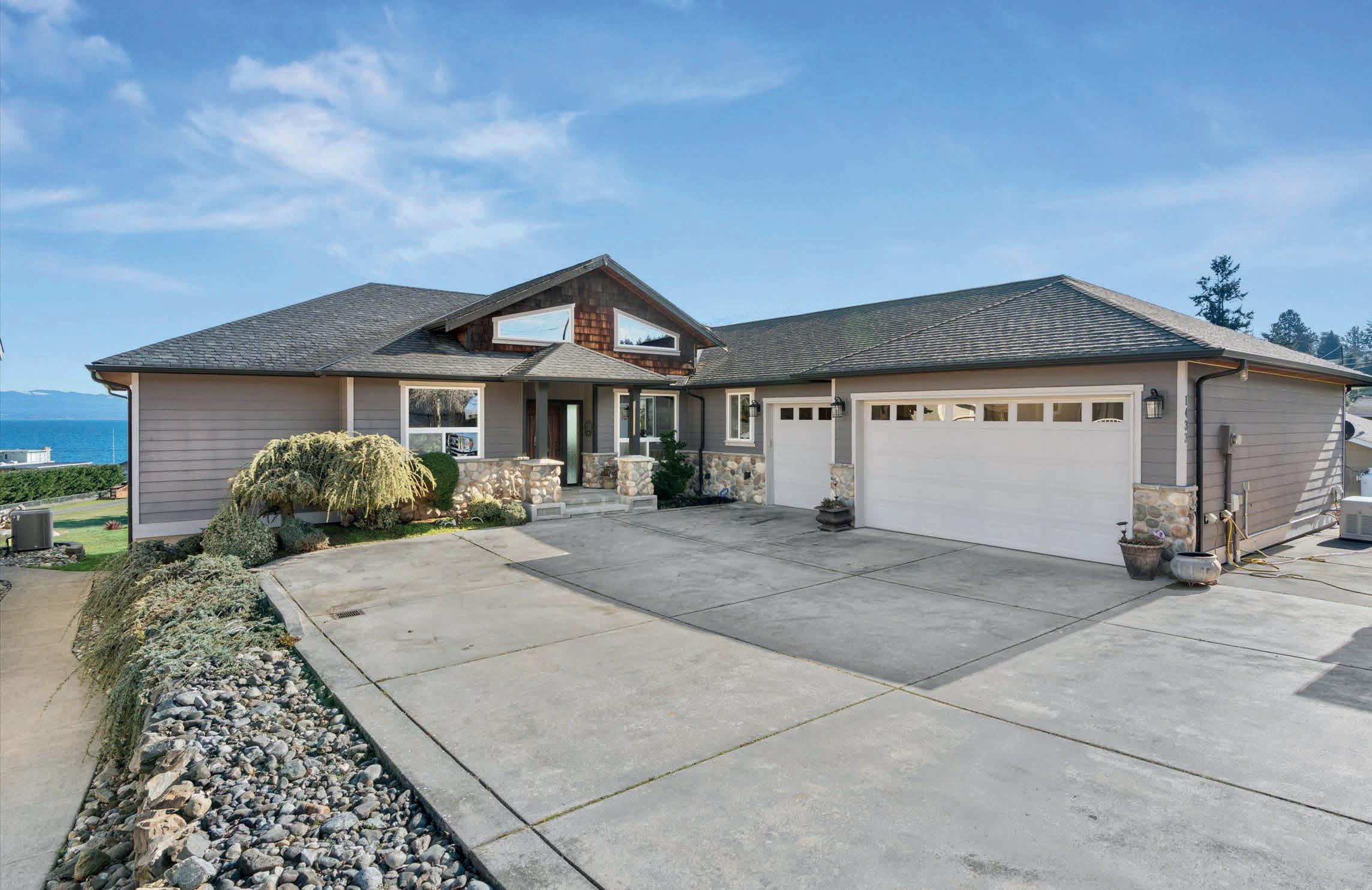 Stunning custom rambler with a front-row seat to the Pacific NW! Expansive views of Port Susan Bay, Mt Baker & the Cascades create a stunning backdrop throughout this home. Living area highlights vaulted ceilings & a cozy dual-sided gas FP. Warm Tigerwood floors flow into open kitchen offering hickory cabinets, granite counters, wine fridge & breakfast bar. Primary suite enjoys gorgeous views with deck access & 5-piece ensuite with heated floors. Spacious composite deck spans length of home, perfect for entertaining or just soaking in the views. ADU potential in unfinished basement with separate access, designed with the future in mind. Home also provides 3-car heated garage, whole-home auto generator, & ample parking for all your needs, including a 50-amp RV outlet. Community beach access just around the corner. This home has it all!
