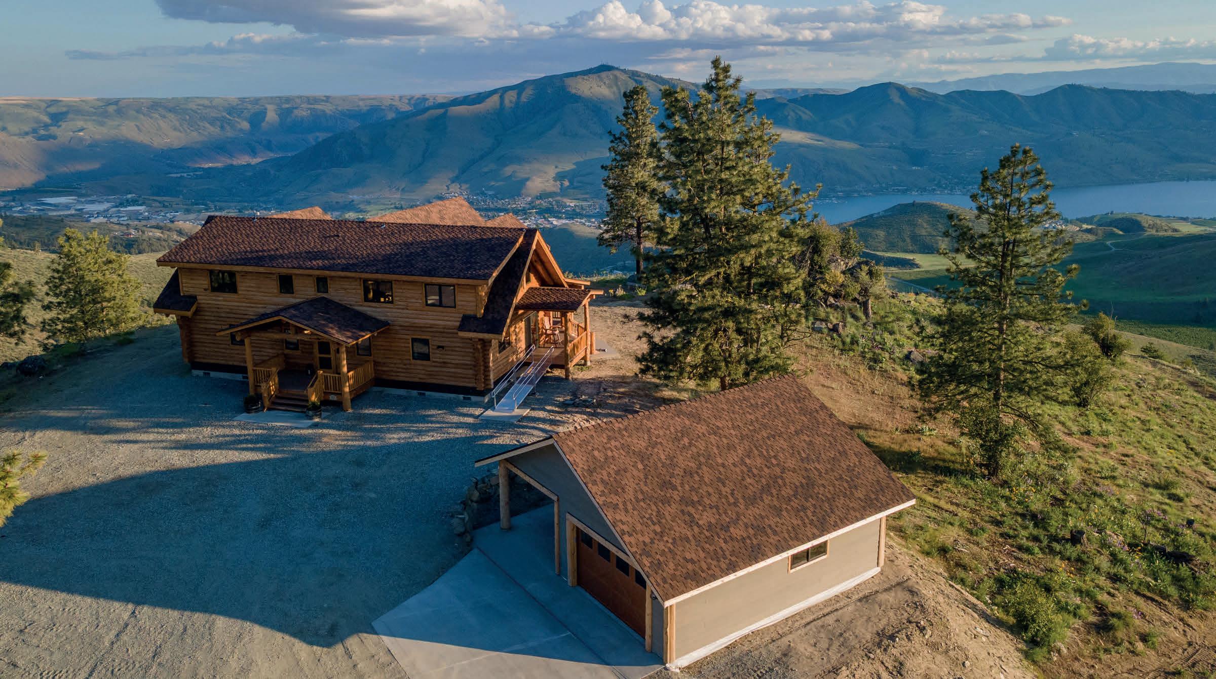 PRIVATE GATED MOUNTAIN ESTATE! New construction 3bd/2.5bth 2,697 sq ft custom-built luxury log home in Chelan Vista Heights w/ six lots totaling 124 acres w/ sweeping views overlooking Lake Chelan. The main floor features a Great Room w/ double sided fireplace & vaulted ceilings, bamboo flooring, light-filled kitchen w/ granite countertops, dining room, Primary Bedroom & French doors throughout leading to a classic covered wraparound porch. The upper level loft features a Bonus Room plus two additional bedrooms & bath. Secondary cabin w/ view porch. Detached 2-car garage, Chelan PUD power throughout the entire property, two wells & two 1,900 gallon cisterns w/ water softener & filtration. The additional homesites offer development opportunity.