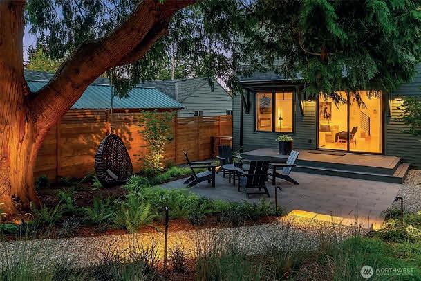 Stunning Modern Farmhouse with a detached garage on a 6,031 SF lot. Thoughtfully re-envisioned and truly better than new, with elevated upgrades throughout: top-down/bottom-up blinds, designer lighting (HAY & DWR), Lutron smart tech, bespoke storage (Shelf Genie & ELFA), and distinctive décor touches. Professional landscaping adds decks, patios, pathways, and easy-care plantings, plus SMART landscape lighting and irrigation. Seamless indoor-outdoor living centers on a magical, sun-dappled, fully fenced courtyard wrapped in high-quality cedar fencing; a custom utility meter enclosure underscores the attention to detail.Inside, the open, light-filled Great Room is anchored by a culinary kitchen with stainless steel appliances, including an Induction range, and an huge island with seating for 4-5. A main-level 4th bedroom beside a ¾ bath is ideal for a den/office or easy-access bedroom; upstairs, the primary suite sanctuary offers a walk-in closet and double-head shower. Features include white oak floors, ductless A/C, and EV-prewired parking. In one of Seattle’s friendliest neighborhoods—minutes to Endolyne, Lincoln Park, shops & eateries—15 minutes to SeaTac Airport, yet blissfully quiet and private. Garage + lots of off-street parking. Combine w/ MLS#2473526 for rare flexibility: multigenerational living, income potential, luxe guest house, or work/life separation. Extraordinary!