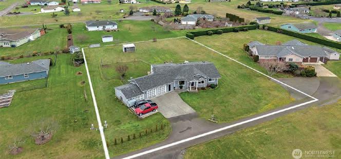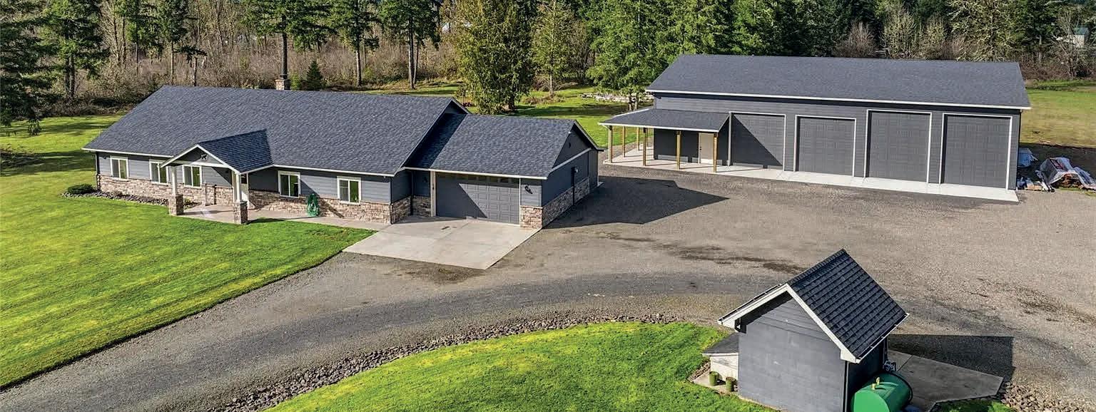 This property in Toledo offers a single-level, accessible 4-bedroom, 2-bath home on 5 acres of flat land, blending rural tranquility with convenient access to I-5. The home features an open layout with high ceilings, large windows, and multiple dining areas, plus a spacious laundry room and a cozy fireplace. Outside, there are lovely views, a chicken coop, patios, and a large, high-quality shop measuring 50’ x 72’, ready for finishing with insulation, sheetrock, and optional loft space. The property includes covered porches, a radiant floor system (not yet connected), French drains, rock landscaping, extensive parking, and a beautifully maintained yard—an ideal opportunity to customize and enjoy.