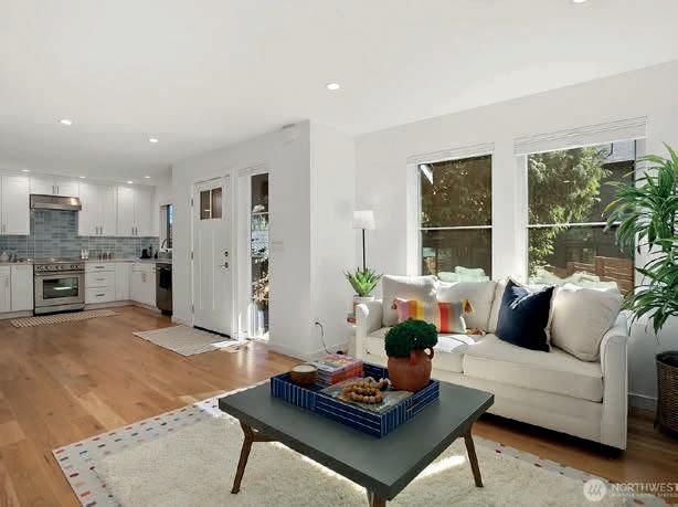 Spacious and stylish, this grand-scale Madison Park townhouse offers 3 large bedrooms plus a versatile den/ loft/office with closet—ideal as a 4th bedroom—Nearly 1,900 sq ft. Enjoy ample storage, a cozy wood-burning fireplace for cool evenings, and lovely decks on every level. The topfloor primary retreat captures peek-a-boo views of Lake Washington and the Bellevue skyline. An updated kitchen and refreshed baths shine, while the expansive front and back patios create a private oasis for alfresco entertaining. Included are two parking spots. Walk out your door one block to experience beautiful Lake Washington beach, shops, fine dining and walking experiences at the Arboretum.