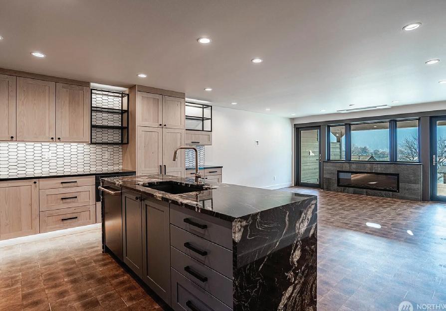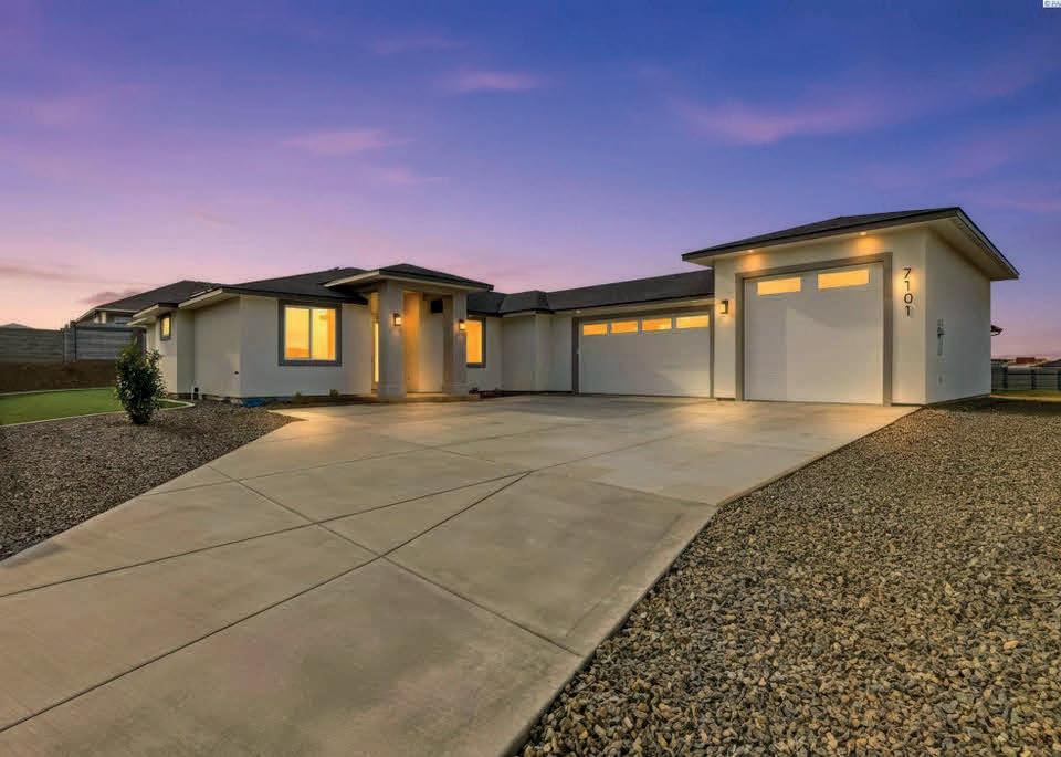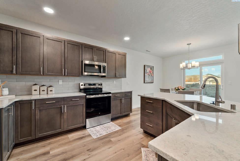 Experience designer luxury in this stunning 2022-built home nestled in Southcliffe’s most exclusive neighborhood, boasting million-dollar views of the Columbia River. This 4-bedroom, 3-bath residence showcases exceptional craftsmanship and sophisticated finishes throughout. The interior features wide-plank LVP wood flooring and matching wood accents that create a seamless, contemporary aesthetic. The gourmet kitchen is a true centerpiece, featuring a large island with a striking waterfall granite countertop, open shelving, and a generous bank of cabinets that offer both beauty and functionality. Designer-selected tile accents in all three bathrooms elevate the interiors into a true masterpiece. Thoughtfully designed for today’s lifestyle, one bedroom easily serves as a den or home office. Modern comforts include geothermal heating and cooling, a soft water system, and reverse osmosis filtration. Whether you’re looking for your first home or a retirement retreat, this property offers low-maintenance, single-level living with no steps—perfect for ease and comfort. Sit back and enjoy the envious views while entertaining friends and family in style. From its elegant interiors to its energy-efficient systems, every detail of this home embodies refined Northwest living.