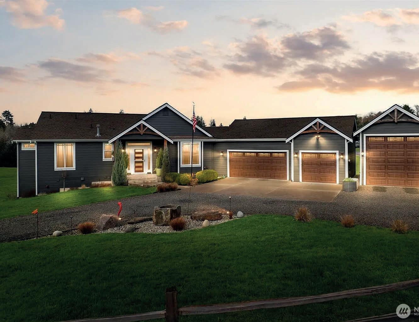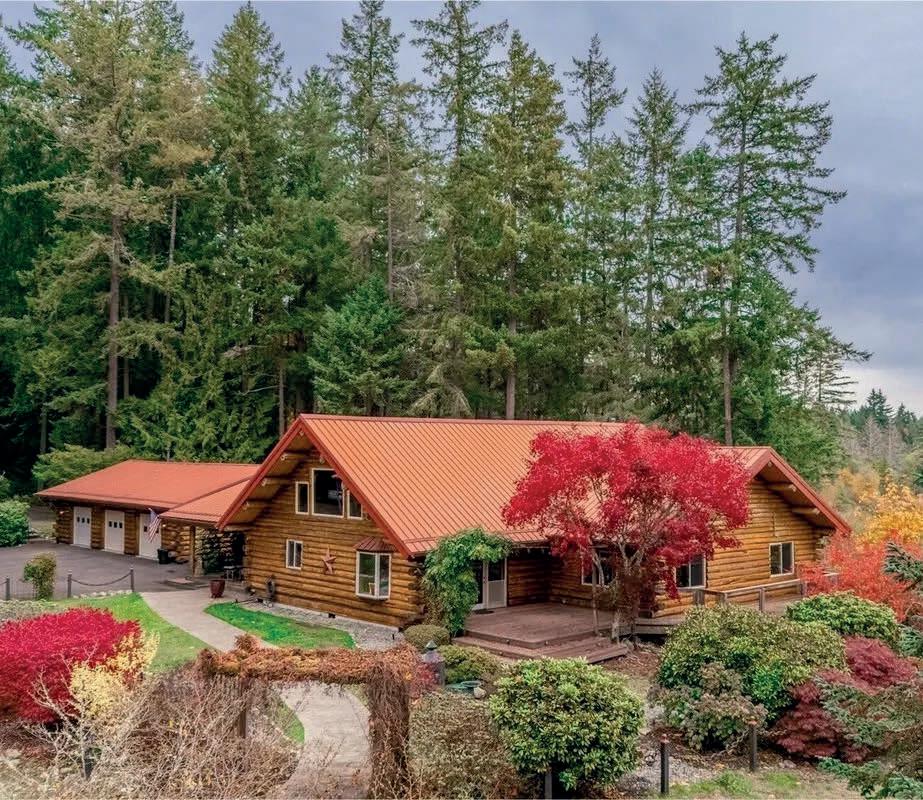 Meander through towering firs and cedars to this breathtaking 3,000+/ - sq ft log lodge on 5+/ - private acres off Johnson Point, showcasing a majestic Mt. Rainier view. Enjoy the feeling of living in the wilderness while still being close to town. The expansive great room pairs beautifully with a huge chef’s kitchen, ideal for entertaining. A split-bedroom plan ensures privacy, while outdoors offers multiple decks, two firepits, a charming cabin perfect for guests or crafting, and open fields for livestock. Durable metal roof, propane or wood-powered radiant heat, and an oversized 3-car garage complete this rare retreat blending seclusion with modern convenience.