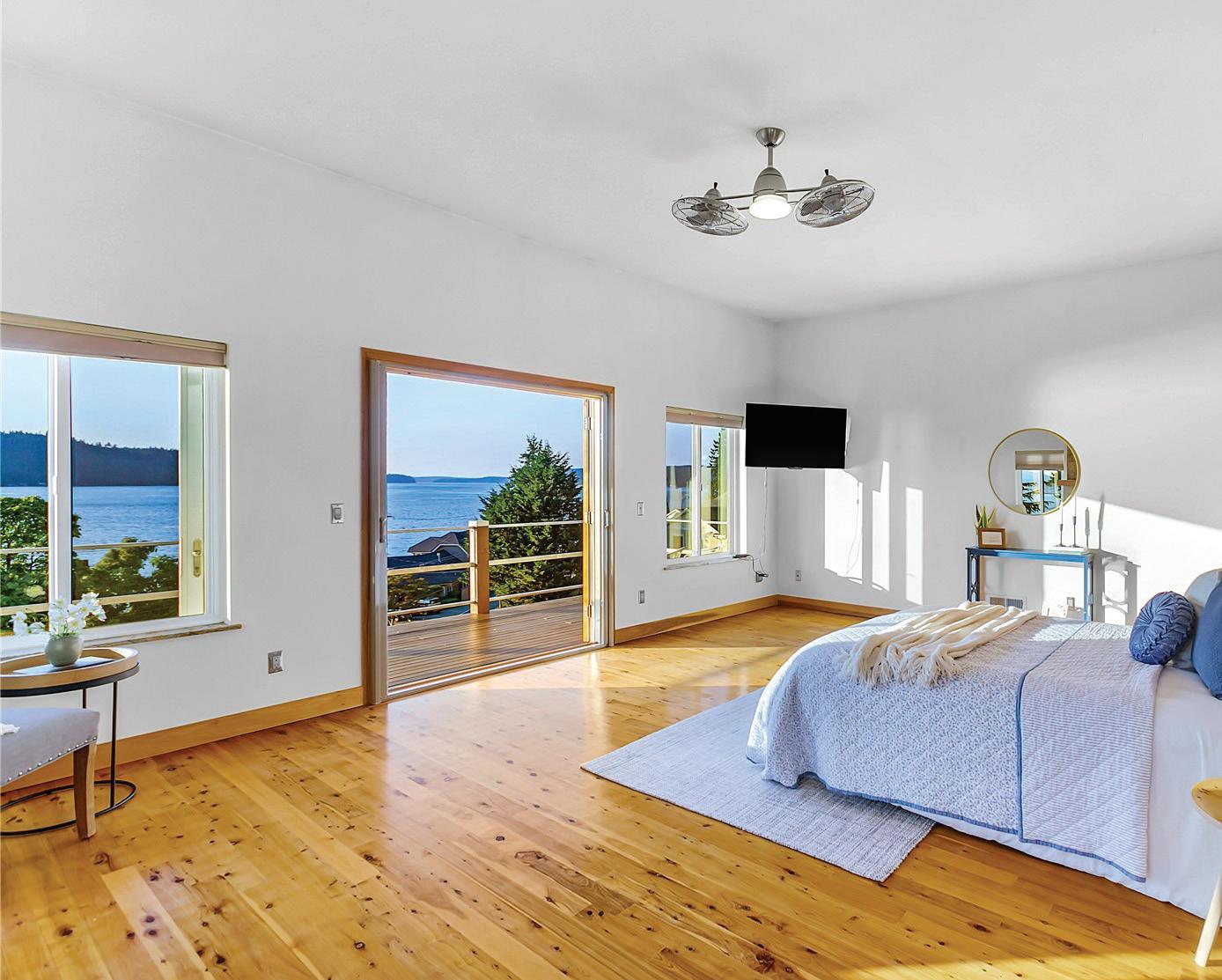 Experience this private Orcas Island home with sweeping water, mountain and village views. Ideally located, offering easy access to Moran State Park, Mt Constitution, lakes, public beaches and shopping in Eastsound. Main floor living offers chef’s kitchen as focal point, with oversized island, top tier appliances; elevated dining area; primary suite that captures views from every angle, modern spa bath, walk-in closets, sitting area-gas/propane fireplace; bonus room, large 2 car garage. Lower level showcases 1 bed/1 bath studio apartment. Upper level includes 2 bed/1 bath and flex space. Custom cabinetry throughout, attention to detail. Enjoy NW year-round with covered outdoor bbq/picnic area, fire pit and patio area located on second tax parcel. This home is as functional as it is beautiful