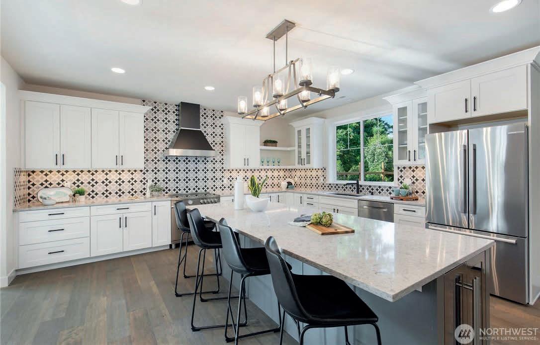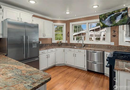 MLS 2475097 | $1,000,000 | Beautifully maintained 3 bedrooms, 2.5 bathrooms home nestled on a generous 13,504 square foot lot in the charming Logan Park area of Lynnwood. This 1,864 square foot residence combines comfortable living with versatile spaces for entertaining and everyday life. Chef’s kitchen renovated in 2023 shines with quartz countertops, new cabinets, stainless steel appliances & breakfast bar. Primary suite with new bath offers a peaceful retreat with dual vanities, walk-in closets & large private deck. Two additional bedrooms provide flexibility for family, guests, or home office space. Step outside to the spacious entertaining patio, sprawling level back lawn, & raised garden beds, ideal for outdoor gatherings, play, or gardening. The home also offers a 2-car attached garage, ample driveway parking, storage shed and RV parking. Recent updates include Hardiboard siding installed in 2021 and new roof & windows in 2017. Located just minutes from Alderwood Mall, Downtown Lynnwood, and I-405 & I-5, this home offers easy access to shopping, dining, & commuting while providing a serene setting for daily life. Modern upgrades, abundant outdoor space, & a prime location in the Edmonds School District make this property a rare opportunity to enjoy comfort, convenience, & lifestyle in one complete package.