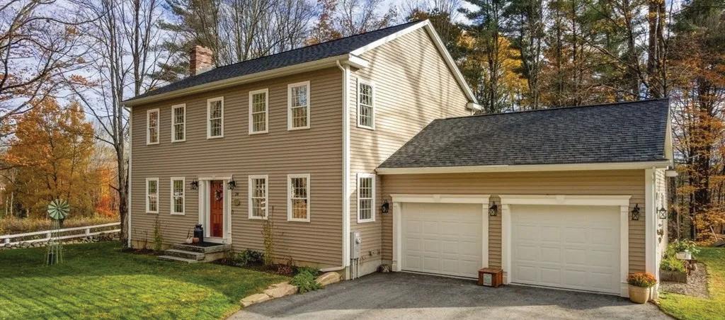 Almost new three-bedroom Colonial with upgrades features an open, sun-filled floor plan, a cozy living room with a wood fireplace, and a well-equipped kitchen with granite countertops and stainless steel appliances. The primary suite includes two closets and a private bath, with two additional bedrooms, a full bath, and laundry upstairs. High-efficiency heat pumps, a full-height basement, and a large backyard deck make this home ideal for entertaining, all in a top-condition property with country views and easy highway access in the Tantasqua District.