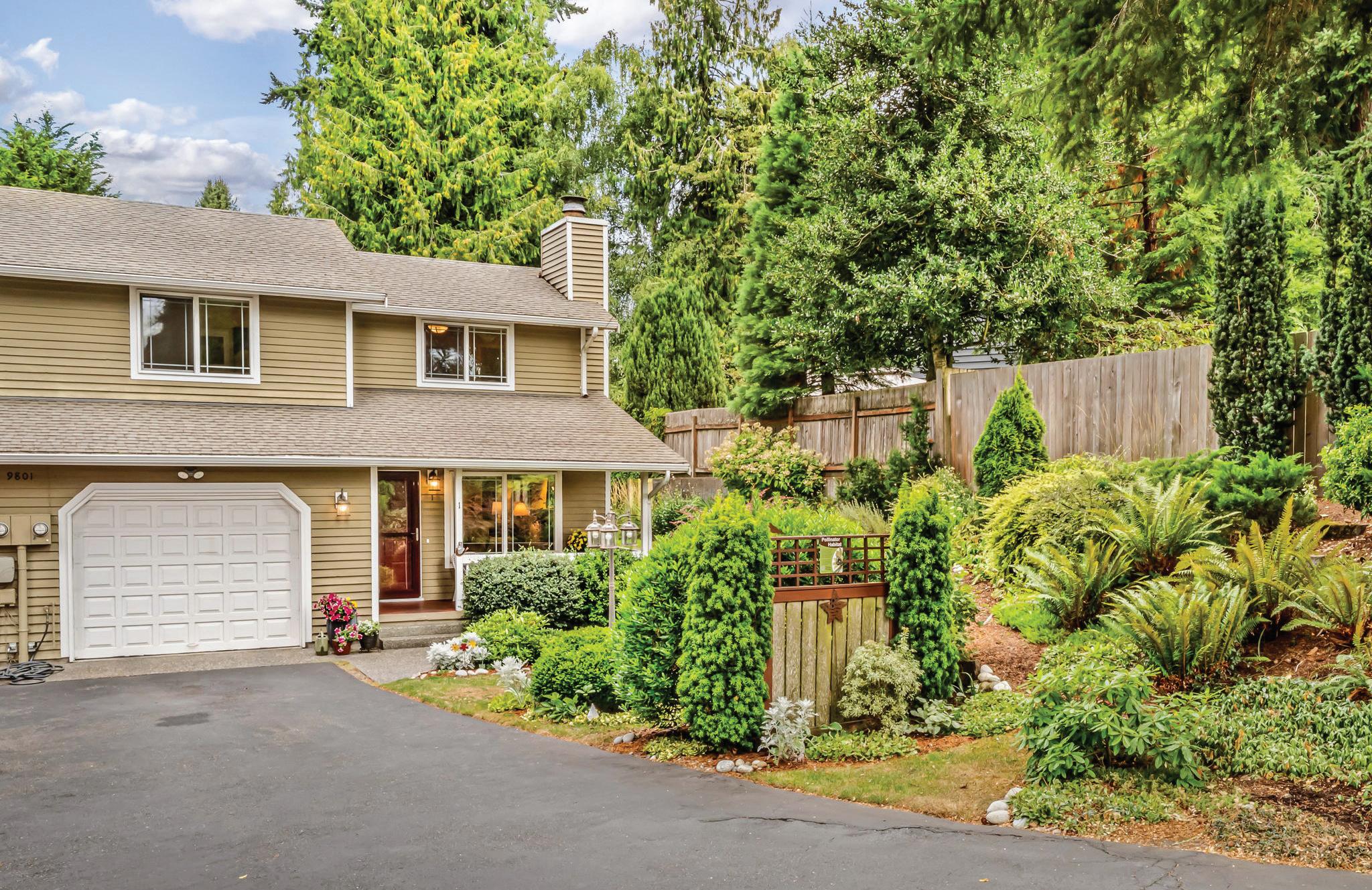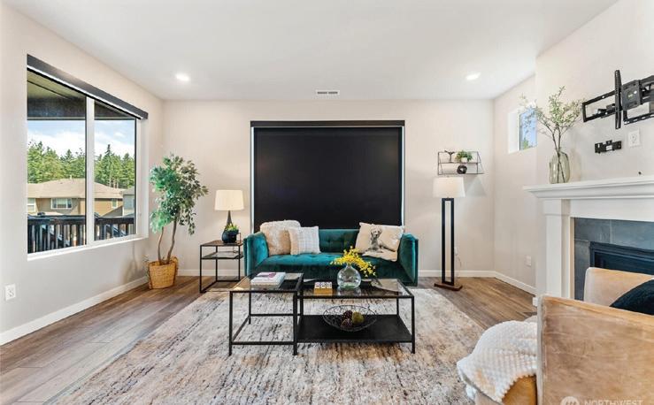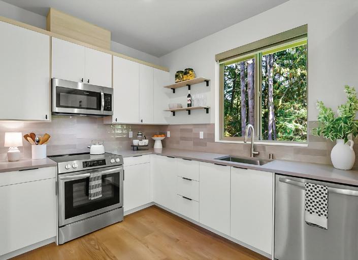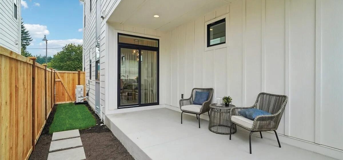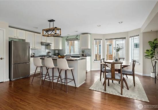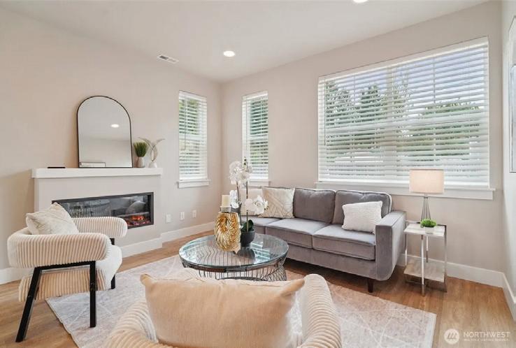 Effortless living in this modern home, steps to light rail, Chief Sealth Trail, golf, shopping, fabulous food, library, parks. Bright 3-bedrooms, 2-baths features spacious great room, gourmet kitchen w/gas cooking, tile backsplash, walk-in pantry, generous dining area + new laminate hardwoods. Upstairs, stylish primary suite, ample closet space. 2 addl. bedrooms + second full bath. 40-year roof, paint, fixtures, all appliances included. Private backyard, detached garage w/new roof, unbeatable convenience—quick commutes, Move-in ready! Dues cover the exterior envelope: siding, windows, trim, fascia, roof, gutters, vents.
