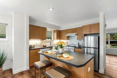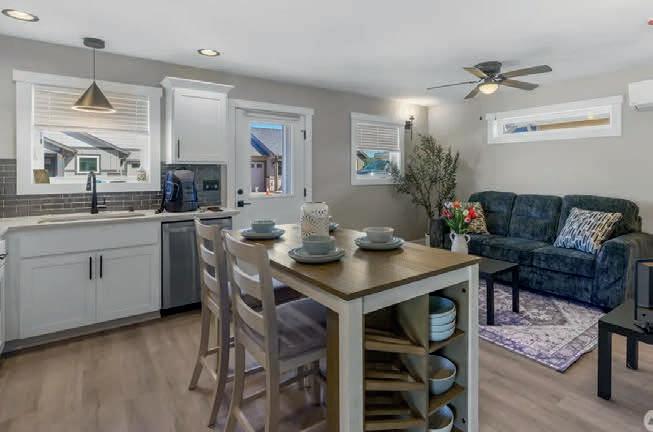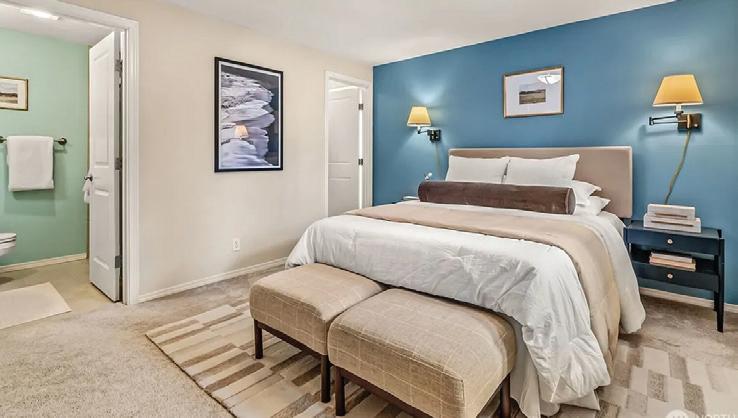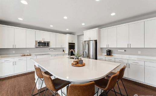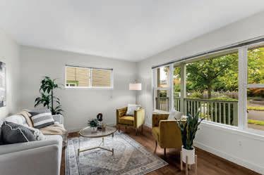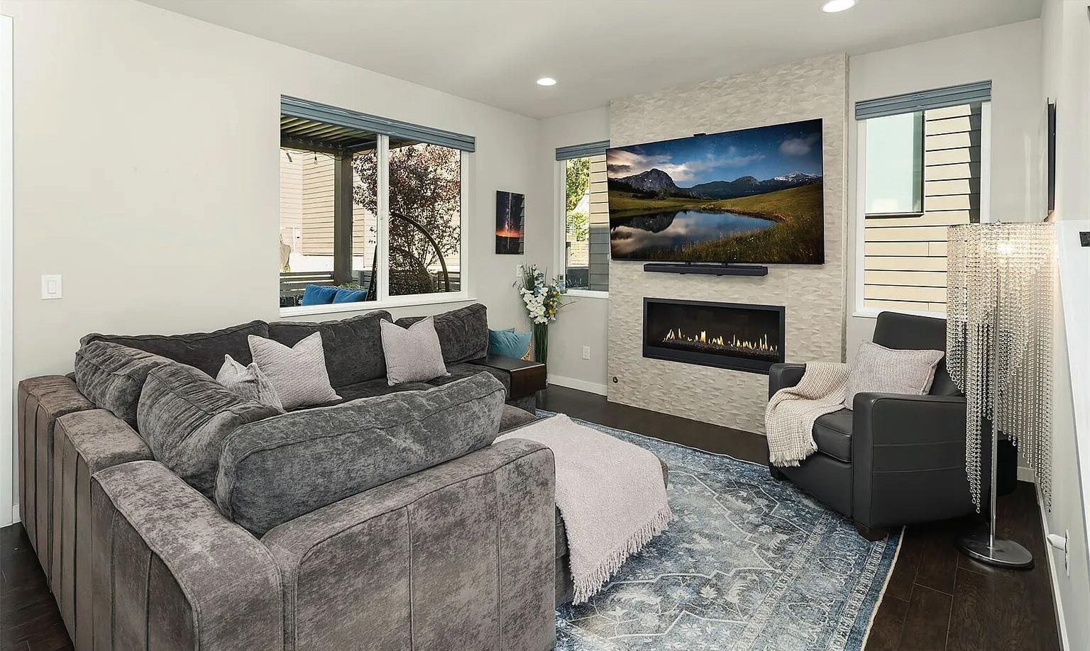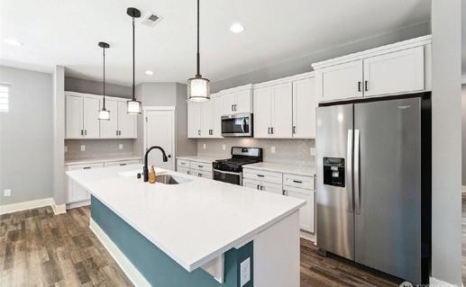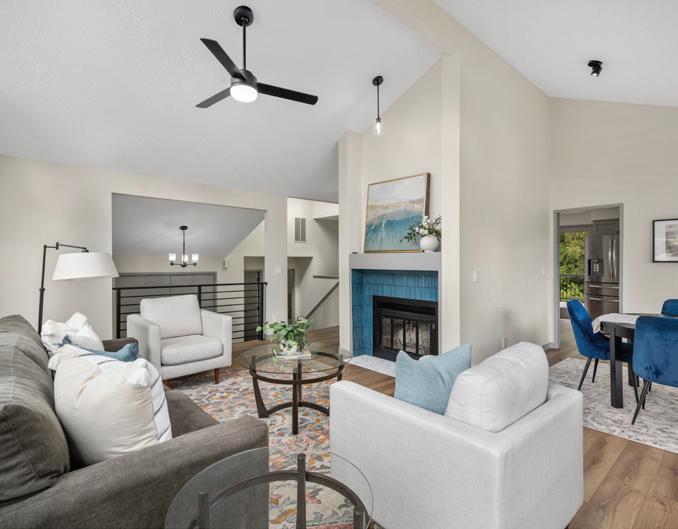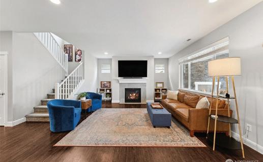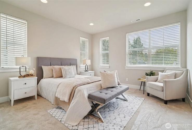 Effortless living in this modern home, steps to light rail, Chief Sealth Trail, golf, shopping, fabulous food, library, parks. Bright 3-bedrooms, 2-baths features spacious great room, gourmet kitchen w/gas cooking, tile backsplash, walk-in pantry, generous dining area + new laminate hardwoods. Upstairs, stylish primary suite, ample closet space. 2 addl. bedrooms + second full bath. 40-year roof, paint, fixtures, all appliances included. Private backyard, detached garage w/new roof, unbeatable convenience—quick commutes, Move-in ready! Dues cover the exterior envelope: siding, windows, trim, fascia, roof, gutters, vents.