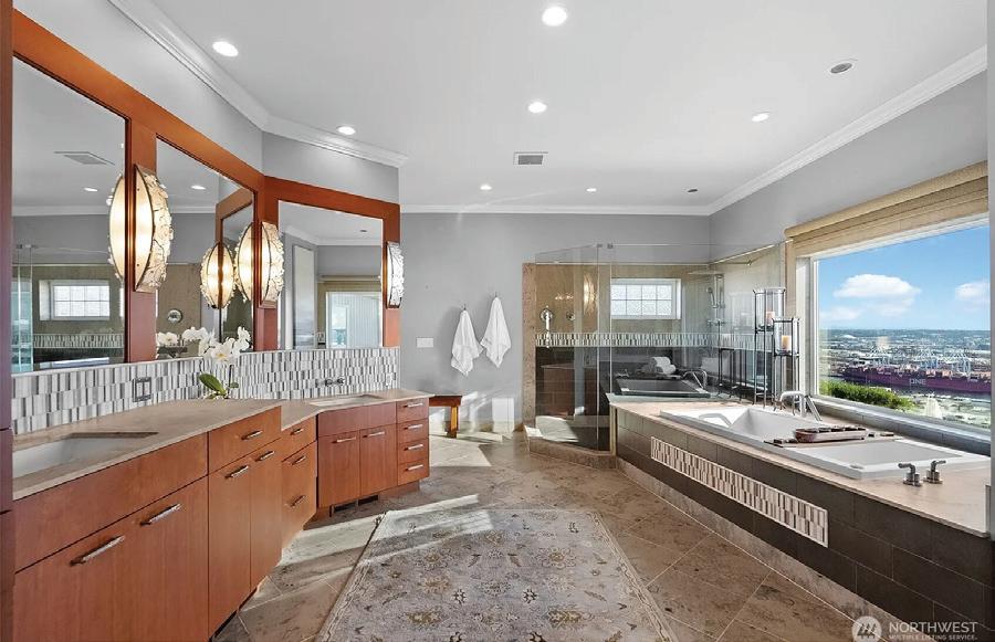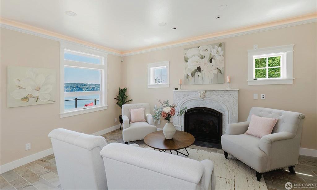Stunning views of Sound & Mt Rainier await in this new construction architectural masterpiece. Engineered to perfection with special features throughout. Advanced lighting turns on lights as you enter,zoned heat pump heating & cooling, wi-fi access points on each floor. Cherry wood stairs & floors. Master chef’s kitchen w/2 refrigerators,built-in coffee maker,baker station,pantry. Open to kitchen the living room with advanced lighting,antique marble fireplace,door to huge deck. The upper floor a 2-sided fireplace in primary bedroom w/adjoining bath. Sweeping views from walk out balcony. Another full bath,bedroom & den. Lower level a capacious art deco recreation room,ornate marble fireplace,kitchenette,3/4 bath ready for steam shower. Tidelands owned.