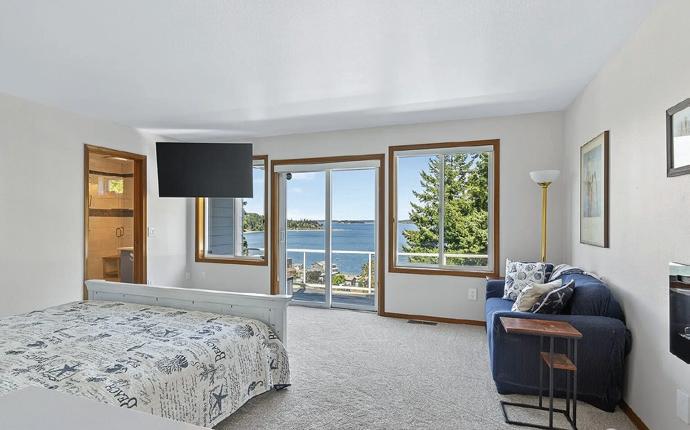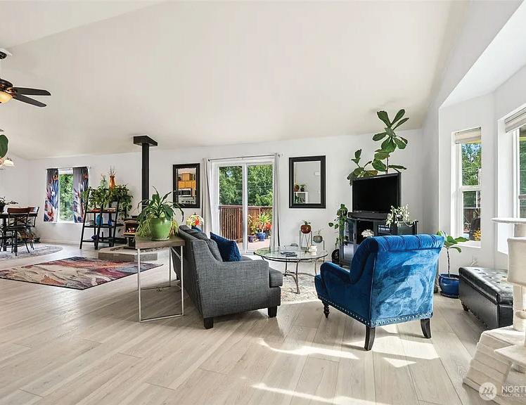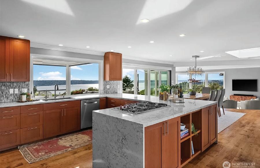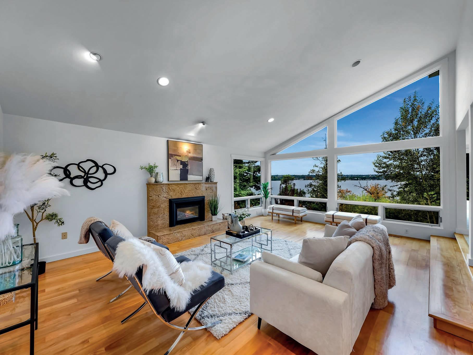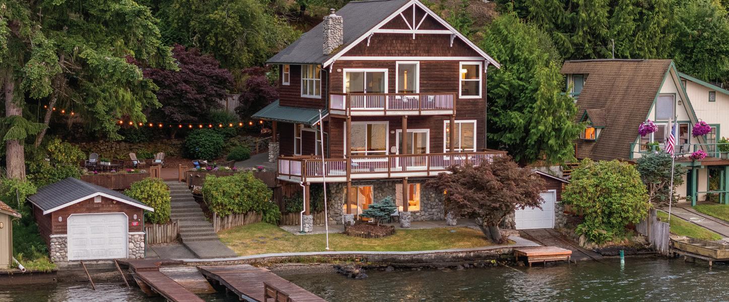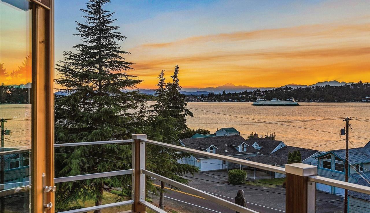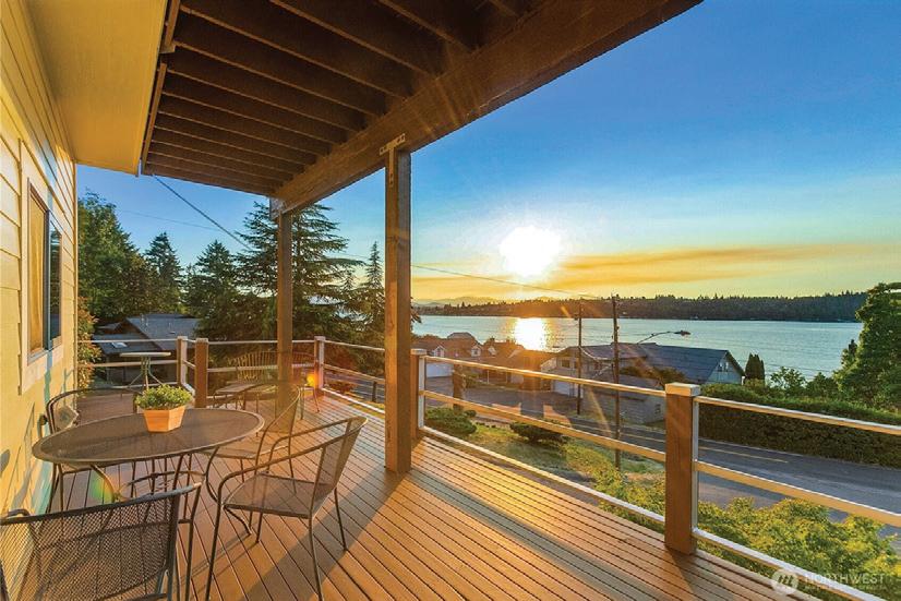 MLS 2426180 | $2,150,000 | Panoramic Southwesterly views of Lake Washington, Magnuson Park, and stunning sunsets from both levels of this 4-bedroom, 3.5-bath vintage home, perfectly perched above Holmes Point Drive on a .36-acre lot—just one house from the lake. Originally built in 1923 and carefully updated over the years, this 3,537 square foot residence combines vintage charm with modern amenities in the heart of the sought-after Holmes Point neighborhood. Quality upgrades include chef’s kitchen, oak hardwood floors, updated baths—some with heated floors—newer windows, electrical, plumbing, central A/C with upstairs mini-split units & central vacuum. Walls of windows and expansive view decks on both levels invite the outdoors in, creating a seamless connection to the beautifully landscaped grounds with fruit trees and ever-changing lake vistas. Located just a few blocks from Denny Park, the community boat launch, and surrounded by over 600 acres of protected forests and trails, this is an outdoor enthusiast’s paradise. Award-winning Lake Washington Schools, including top-rated Carl Sandburg Elementary and Finn Hill Middle School. This home offers the ideal blend of natural beauty, community, and convenience—minutes to downtown Kirkland, I-405, and the iconic Inglewood Golf Club. A rare opportunity to own a classic Holmes Point estate with breathtaking views and timeless appeal.