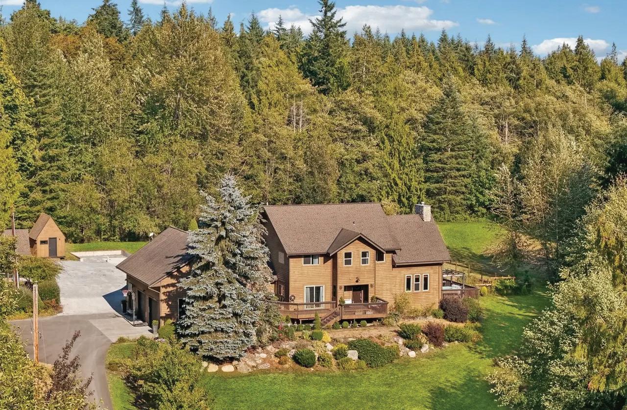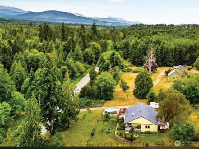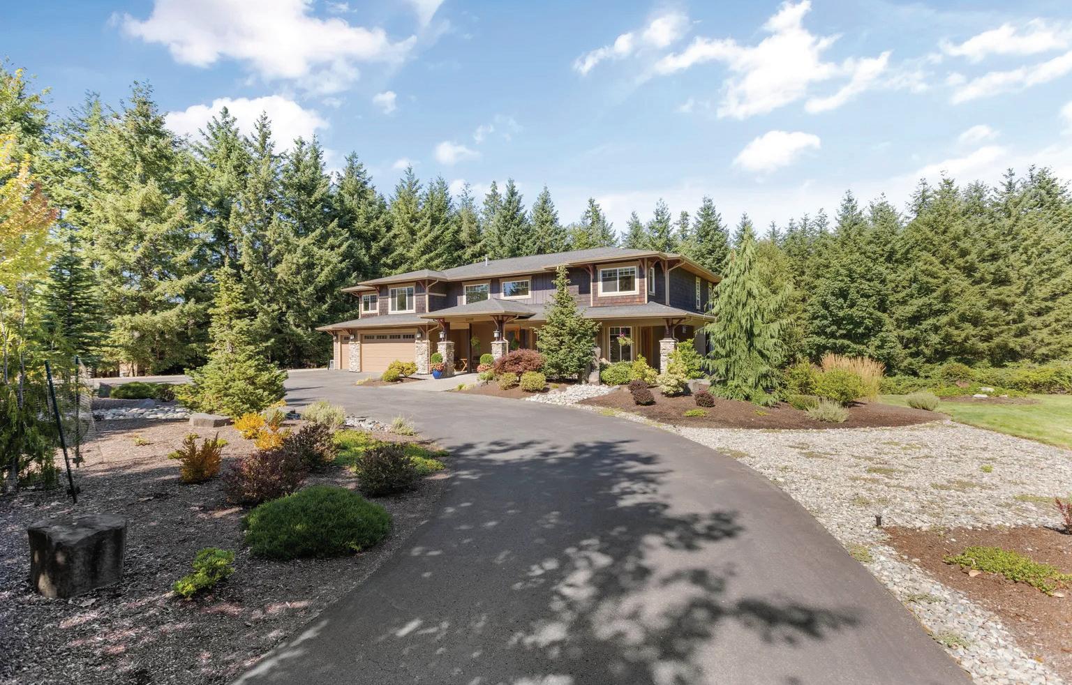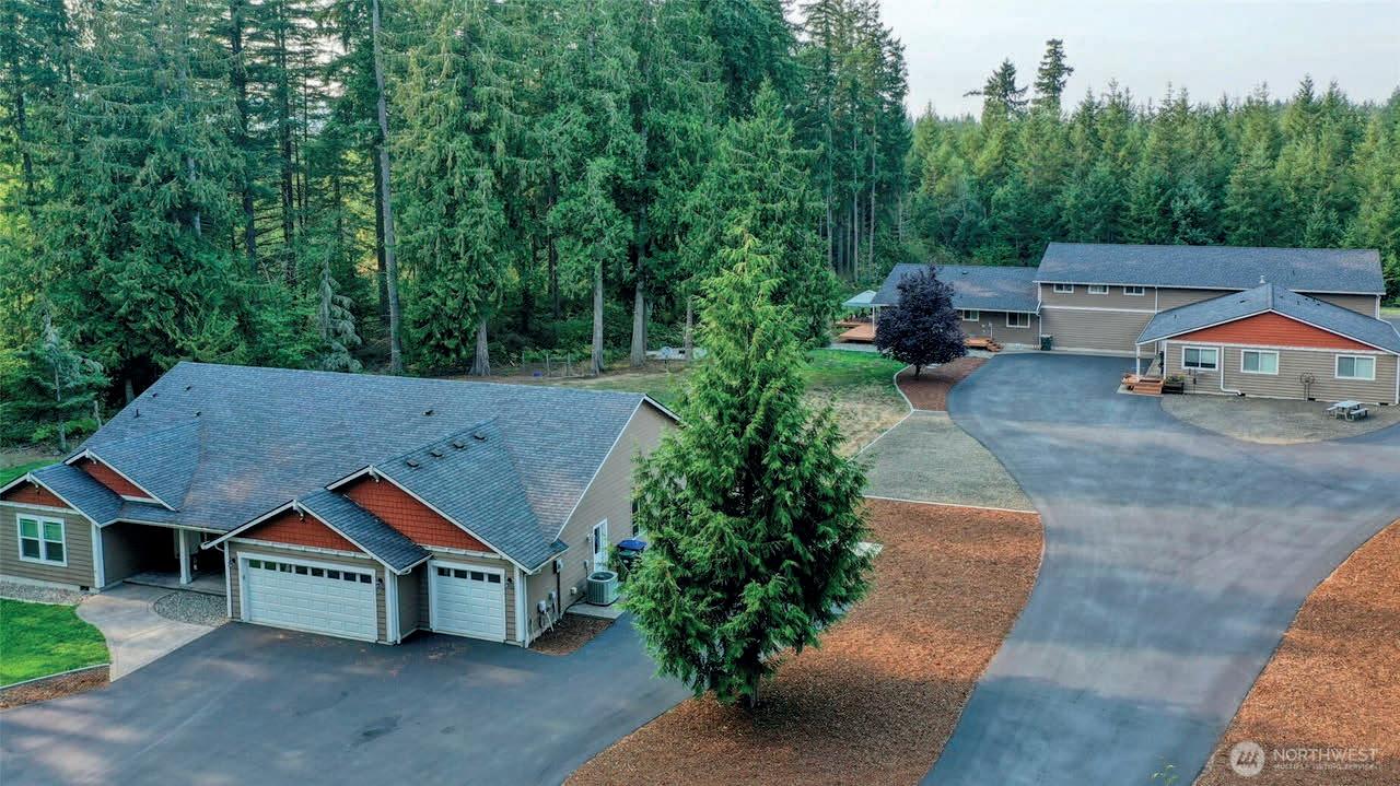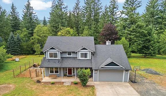 Stunning modern custom home on 2.59 Acres with forest views. There is four bedrooms plus and bonus room and three bathrooms. The bonus room can be used as an office or a fifth bedroom. Large kitchen with a huge island great for entertaining. The large exposed beams highlights the high vaulted ceilings. Through the living room the balcony deck overlooks the expansive views. The home has a separate entrance for the complete Adu in the daylight basement. Great for additional income or the perfect multigenerational home. This home includes a new stainless steel pet bath for convenience while enjoying your indoor pets. Outdoors there is plenty of parking area for boat, rv or to add a shop. Nearby lakes and parks!