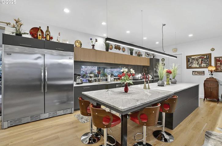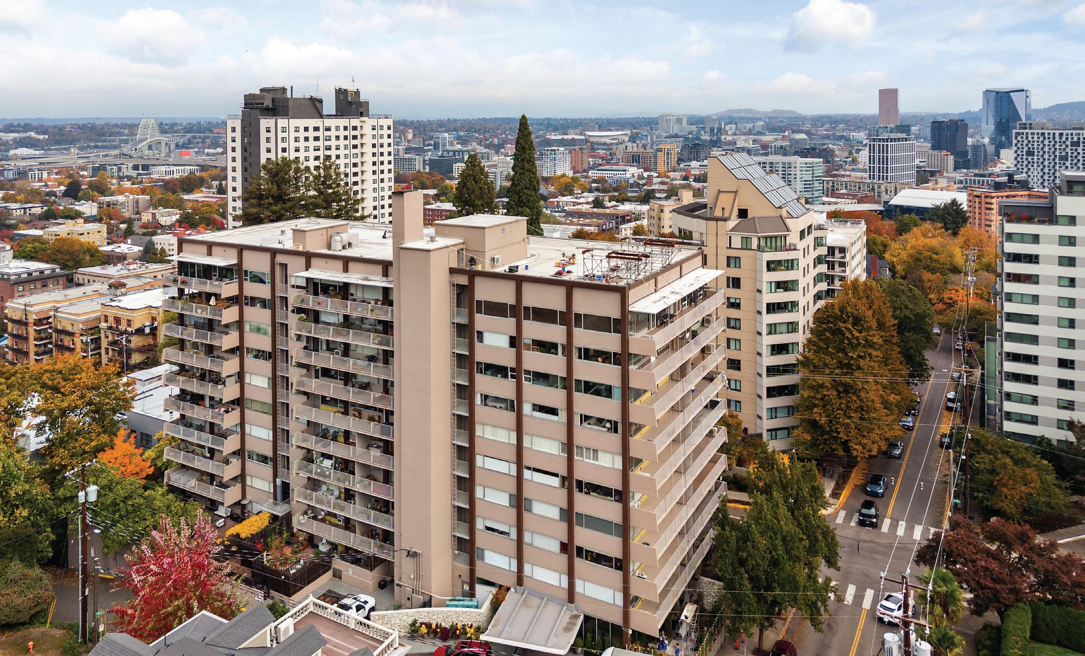 King’s Hill penthouse in the Park Vista Co-Op draws you in with beautiful light and ever-changing vistas of the city, mountains, and fabled Washington Park. This well-appointed home balances modern design with natural warmth. Custom built-ins add sophistication and luxury, while dark plank flooring and chrome fixtures lend a crisp, contemporary edge. Kitchen features premium-grade stainless appliances and is open to living, dining and den. Decks on both east and west exposures, welcome the outdoors in from sunrise to sunset. With an impressive 3,000-square-foot floor plan, the property offers as much living space as many classic homes in the neighborhood — all on one easy level. The location couldn’t be better: close to NW 23rd’s trendy shops and restaurants, close to Uptown conveniences, the International Rose Test Garden at Washington Park, and so much more. From sunrise over Mt. Hood to sunset through the towering firs, light and landscape are part of the architecture itself — a serene retreat at the edge of the city and adjacent to grand West Hills homes of an earlier era.
