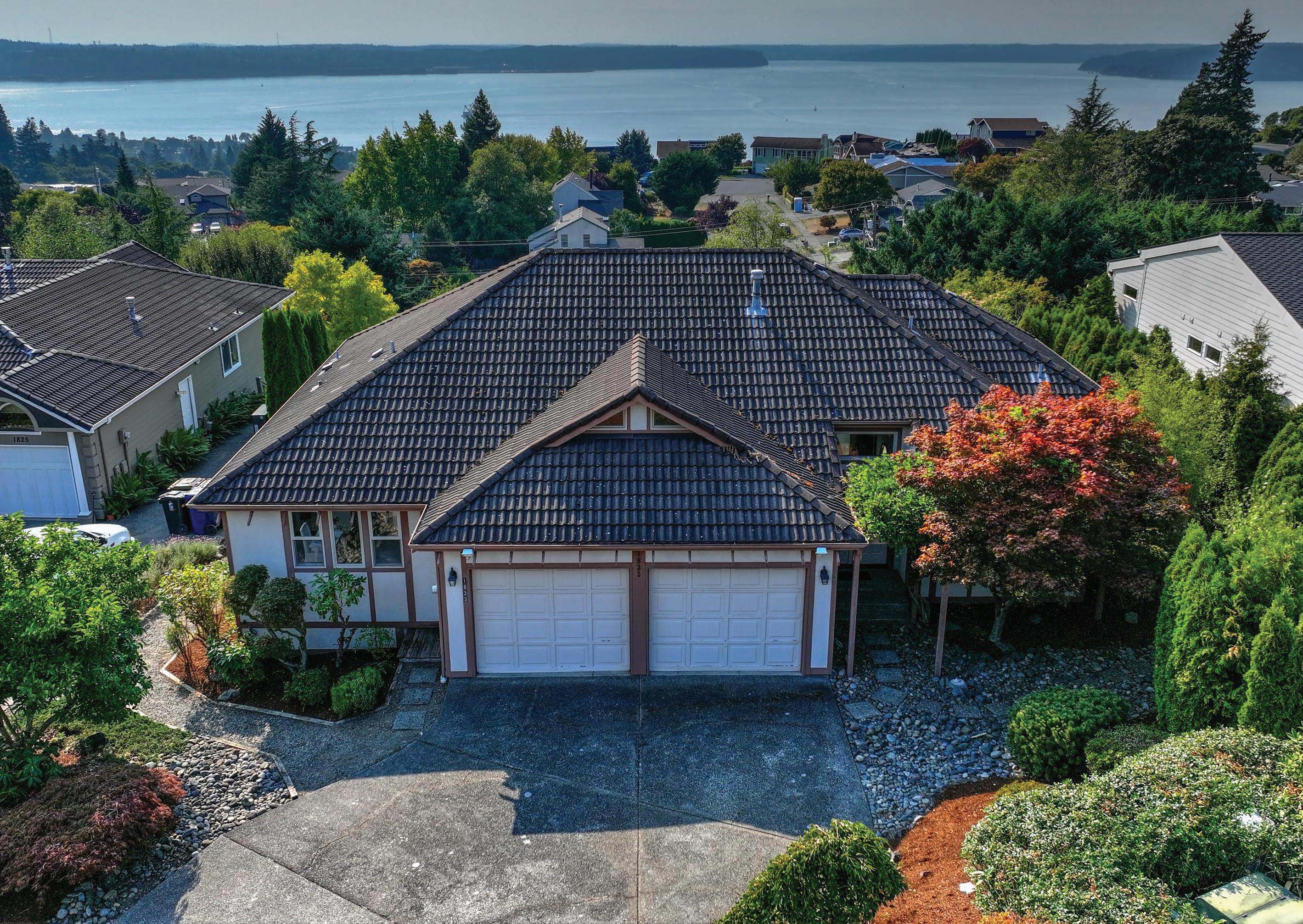 Let the tranquility of the Japanese garden embrace you & prepare you to enter a home designed to share the beauty of the western views. Stepping from the foyer you move into the light filled living space with vaulted ceilings & a front seat to sunsets over Commencement Bay & the Olympics. Step out to the large deck to enjoy morning coffee or a glass of wine after dinner. Meal prep & cookie making is fun in the kitchen with lots of cabinets & all appliances.. Spacious primary suite with full bath on main floor including soaking tub & separate shower.. Room for office or art on main. Downstairs are 3 additional bedrooms & full bath plus family room with patio & views, too!. This lower level could be a separate living space! Create the backyard you want by terracing, adding a sports court, garden & play space!