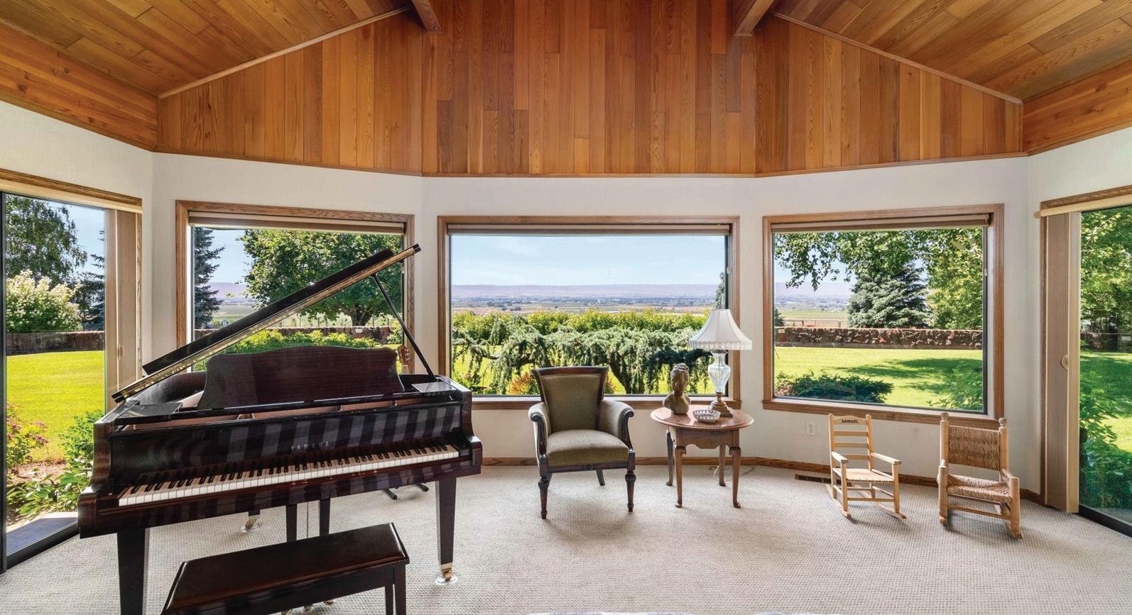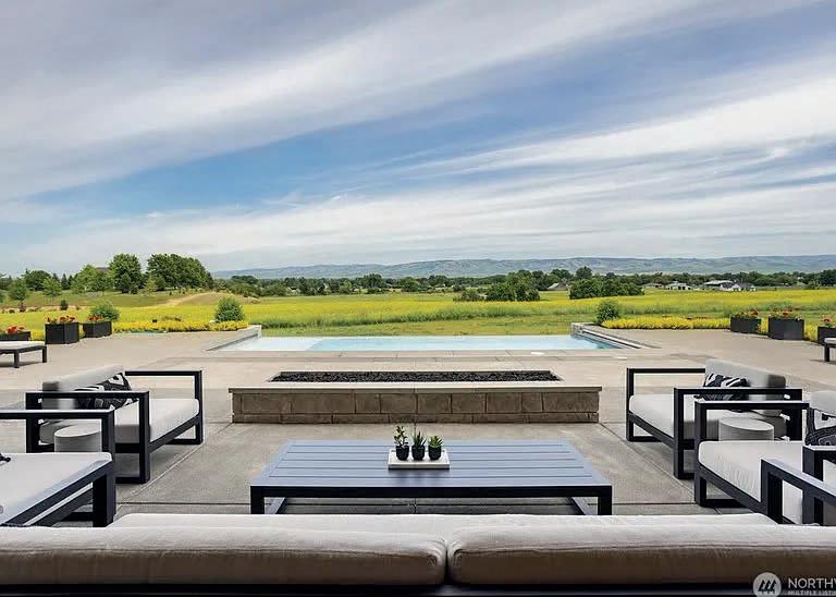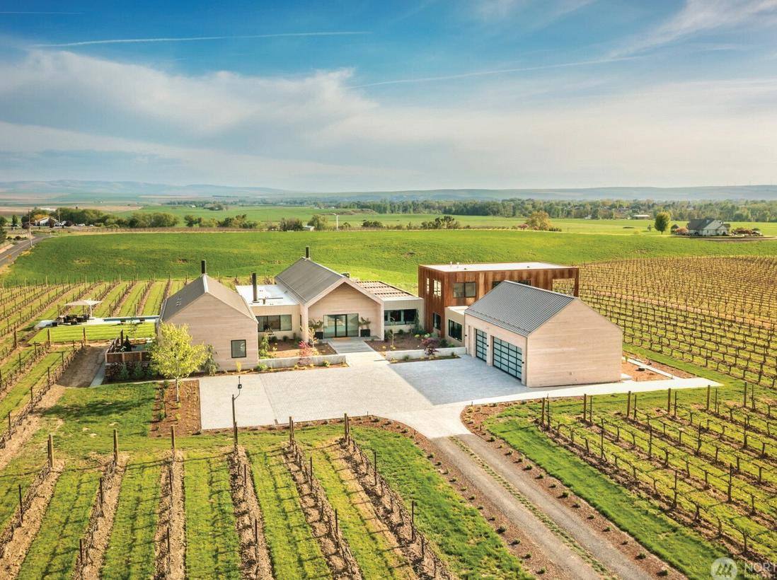 Experience premier Pacific Northwest living on this secluded 15.39-acre estate, offering breathtaking views of Mount Rainier and Mount Adams. Overlooking the lush Yakima Valley and surrounded by pristine MidColumbia desert, this rare legacy property features a 5,000+ sq ft custom home with artisan finishes, soaring wood ceilings, and expansive windows framing stunning vistas. The home includes 4 bedrooms, 5 bathrooms, 3 wood-burning fireplaces, a wood stove, a large country kitchen, formal dining, family room, private office, library, sewing room, and flex space. Outside, enjoy mature landscaping, 6 acres of productive Riesling vines, and 6 acres of fully fenced pasture—ideal for horses, cattle, or hobby farming. Irrigation rights support agriculture and landscaping, with space for equipment or future expansion. Perfect as a retreat, working vineyard, or multi-generational home, this property offers privacy, beauty, and a unique chance to own a piece of Washington’s most scenic countryside. Buyers to apply for continuance of Open Spaces Zoning. MLS# 284996
