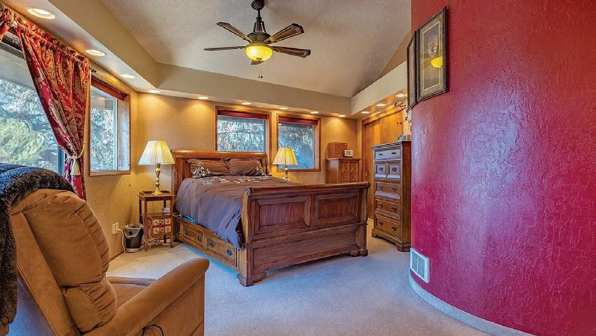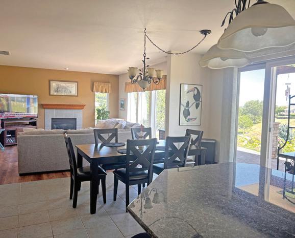 This spacious home features three bedrooms, three bathrooms, a large upstairs open room with sliders to a large balcony, a family room, a breakfast area, an island kitchen, and formal living and dining rooms. Enjoy two gas fireplaces with beautiful mantels, wood, tile, and LVP flooring, and an abundance of natural light. The deluxe master suite includes a glass block double shower, a walk-in closet, and stunning views.