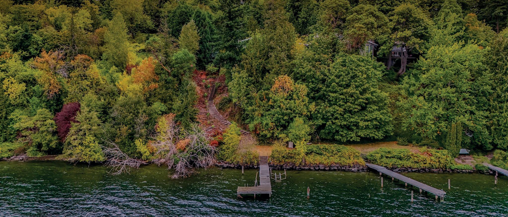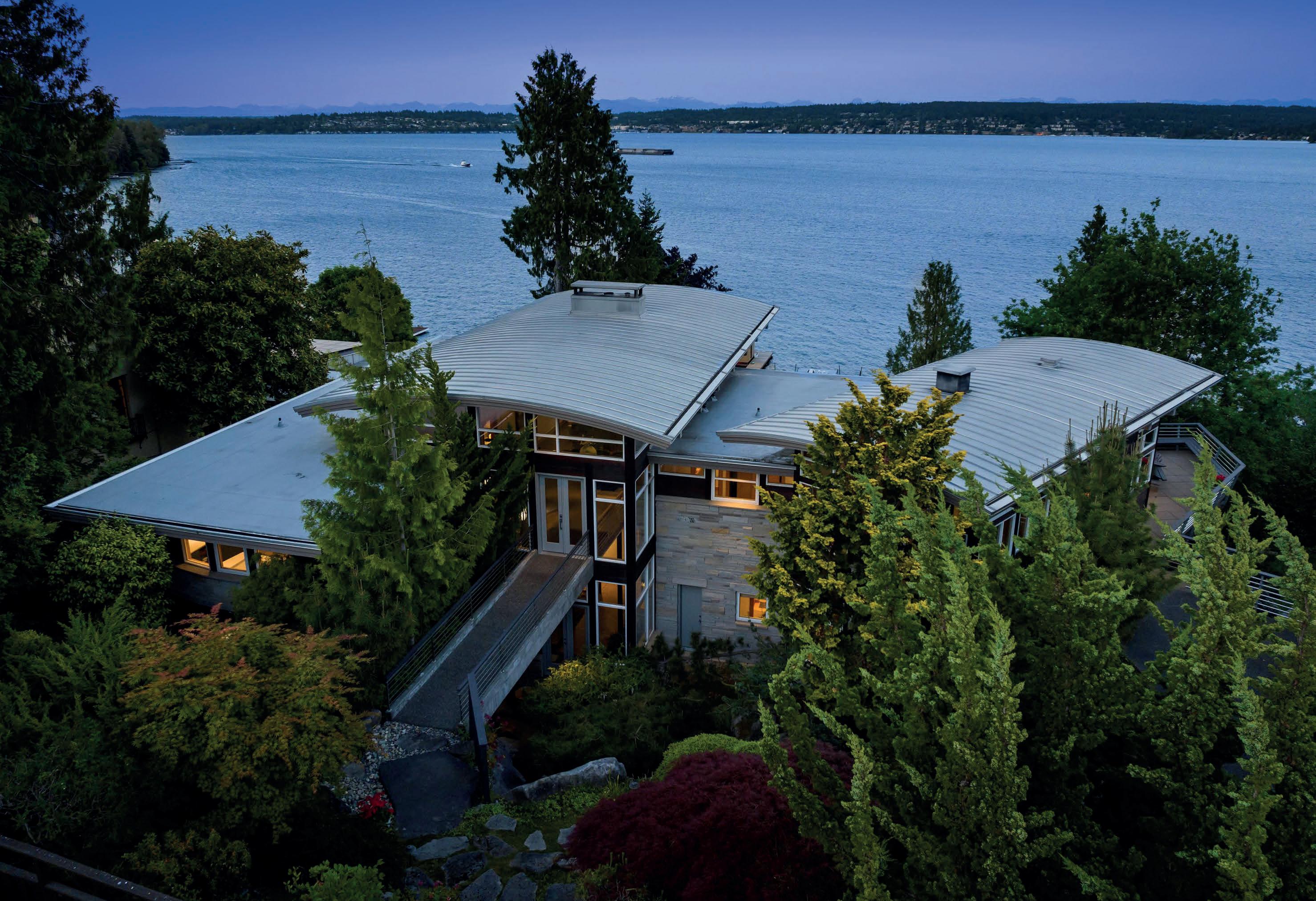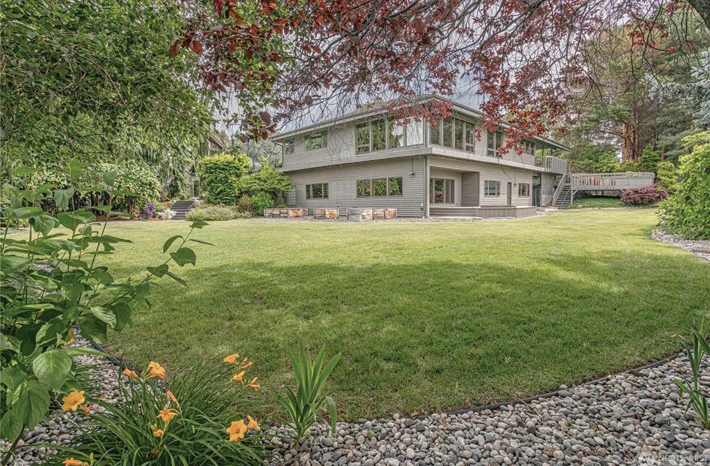 MLS 2382870 | $11,000,000 | Truly exceptional signature Laurelhurst waterfront estate with 155 feet of prime Lake Washington waterfront on 1.17 acres! Architecturally significant 6,488 home with elegant atrium entry built around huge standing granite stone monolith, custom barrel ceilings and walls of windows capturing sweeping, panoramic views of the sparkling waters, Mount Rainier, golden sunrises over the Cascade Mountains and Lake Washington’s never-ending maritime performances from nearly every room. Open and light filled custom 2000 built masterpiece features 5 view bedrooms and 5.5 baths, soaring ceilings, unique spaces and finishes with Northwest wood finishes, expansive view decks and patios, and 4 car detached garage. Incredibly lush, arboretum-like grounds with mature species plantings, imported boulders and beautiful winding walkways to level lakeside gardens, water’s edge step in cove and frontage with 95-foot private dock all on a double lot. One-of-a-kind subterranean tunnel (perfect wine cellar?) amongst many other custom features and spaces that are all part of the amazing potential of this special offering. A+ location near renowned Laurelhurst Beach Club, just a few minutes to U-Village and world class shopping and wonderful commute to eclectic Seattle and Bellevue shops and restaurants. Don’t miss this rarest of opportunities to own one of the great Laurelhurst waterfront retreats!