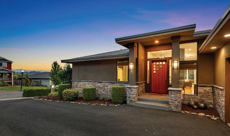 4 BED | 3.5 BATH | $935,000 A stunning Custom Ranch Home with BEAUTIFUL Mt. Hood & Columbia River Views! Experience main level living in this beautifully designed 4 bedroom, 3.5 bath home, featuring two spacious ensuite bedrooms for added comfort and privacy. The open-concept layout is enhanced by the 12 foot ceilings & hardwood floors, PLUS all main level living! The kitchen is a chef’s dream, outfitted with high-end appliances & sleek finishes, truly perfect for entertaining. Step outside to the outdoor patio, extending your living space for year-round enjoyment. The full daylight basement offers flexibility, ideal for multigenerational living, or additional entertaining space. Situated at the end of a quiet cul-de-sac, this home offers peace, privacy, and views! 2509 39th Street, Washougal, WA 98671 ERIC LOPEZ