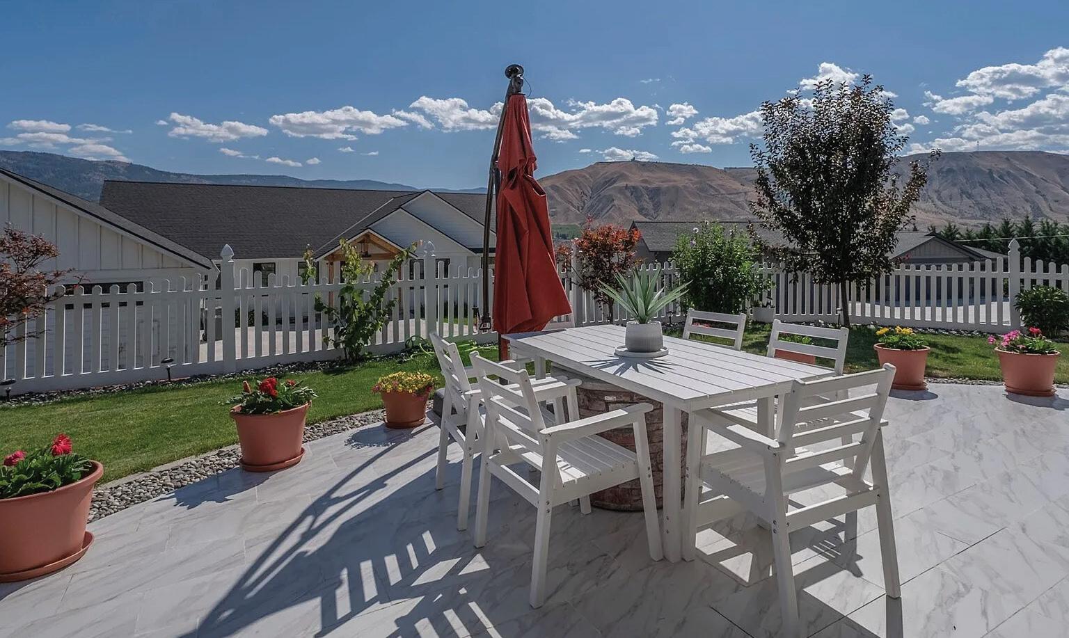 This 4 bed, 3 bath, 3,198 sq ft custom home has been beautifully updated throughout and showcases quality architecture, rich wood accents, and panoramic views of the city, Mission Ridge, and the Enchantments. Features include a gourmet kitchen with Wolf, SubZero, and Bosch appliances, abundant built-in cabinetry, heated tile bathroom floors, and a second suite for guests. The thoughtfully designed landscaping includes a pergola, multiple outdoor decks perfect for entertaining, raised garden beds with automatic sprinklers, and a fully fenced backyard. Set on a spacious, private lot with no HOA. Seller has covered the cost of yard care through the end of the season. Extra parking space available for an RV or recreational toys.