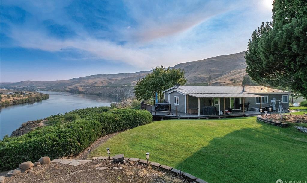Immaculate 1985 manufactured home on Bridgeport Bar, about equal distance between Bridgeport and Brewster. Perched on a high bank with stunning views of the Columbia River and Brewster, this 3-bedroom, 2-bath home features a wood fireplace, well-laid-out kitchen and dining area, and a large front deck to take in the scenery. Nearly 2 acres of manicured lawns, trees, shrubs, fruit trees, and garden space. Includes domestic and irrigation water. First time on the market since built in 1985!
