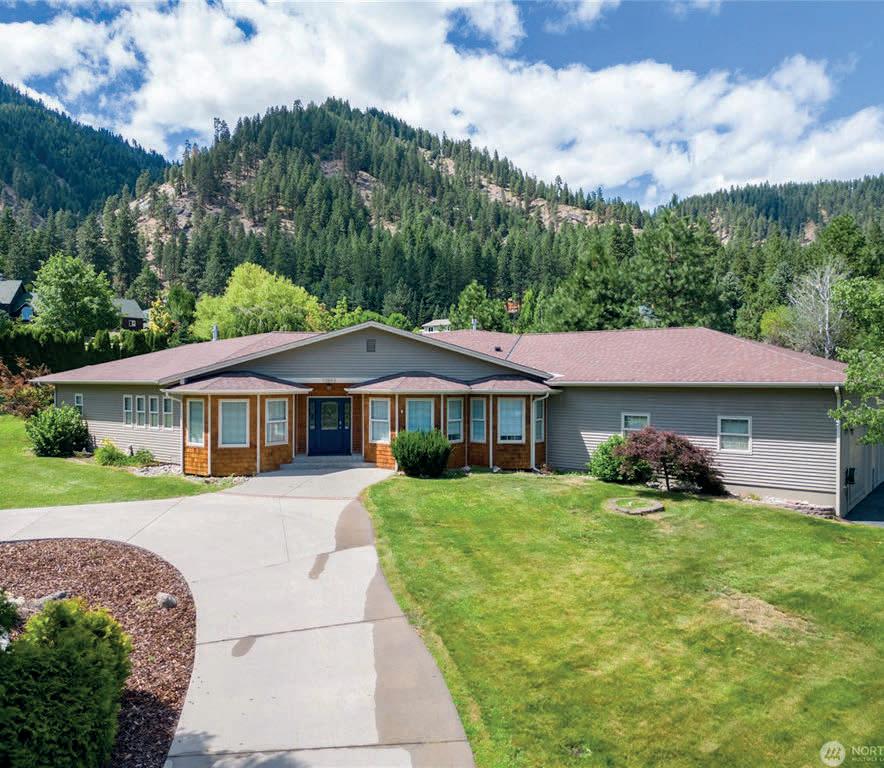 Experience unrivaled river and mountain views from this 3.62-acre riverfront retreat, tucked in total privacy just beyond Chiwawa River Pines. Boasting over 550 feet of Chiwawa River frontage and sweeping views of the Entiat Mountains, this property offers a front-row seat to nature. A cozy, three-level, fully furnished chalet sits perched above the river, with multiple outdoor living spaces -including a covered hot tub- designed to soak in this spectacular scenery. The massive shop/garage stores all your recreational gear and includes a spacious upper-level bonus room for overflow guests. With worldclass snowmobiling and endless outdoor adventure right outside your door, this private riverfront escape is the ultimate mountain getaway.