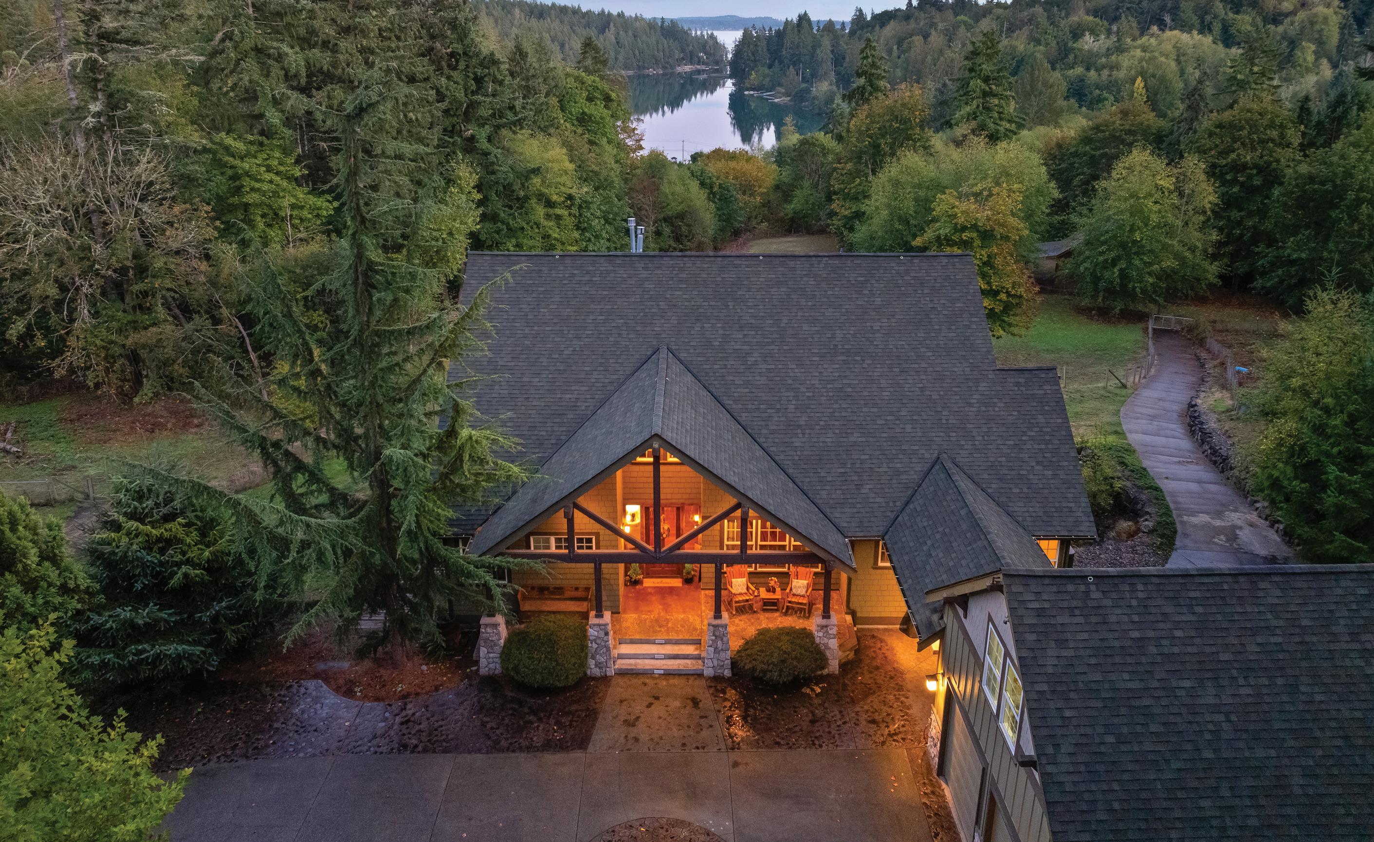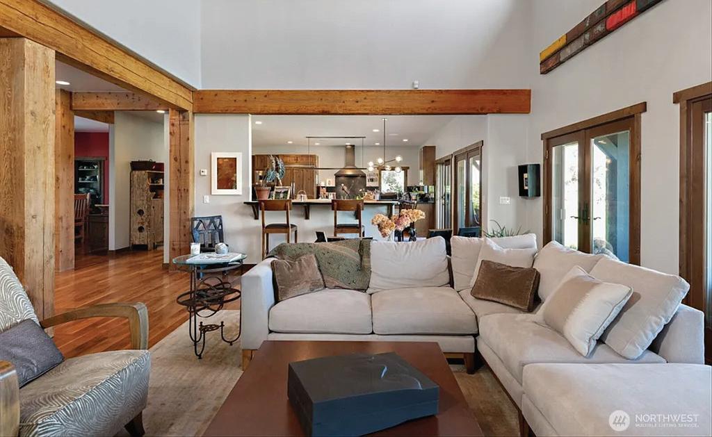 Looking for a place where life slows down? Fully fenced & completely usable. Sweeping views of Glen Cove, Mt. Adams, & Mt. Rainier. 24’ beamed ceilings, solid walnut front door, & 3 fireplaces. The main floor primary bedroom feels like a private spa, with 2 closets, steam sauna, & deck access. The kitchen is as functional as it is beautiful, over 1,200 square feet of covered outdoor space perfect for gathering in every season. The property is a dream for hobbyists, horse lovers, or anyone who craves space: a gorgeous solar-powered barn with loft, detached shop, multiple outbuildings, garden space, ample parking, & even access to riding trails. It’s rare to find a property that balances comfort, function, and pure magic like this one.